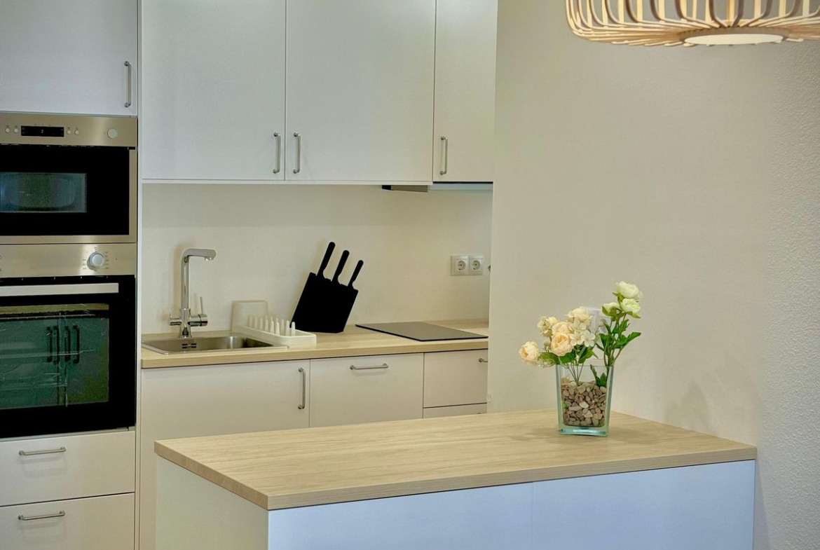 Fully renovated 2-bed / 1-bath beachfront apartment (75 m²) with sea views, located right in Puerto de Manilva / Puerto de la Duquesa.
