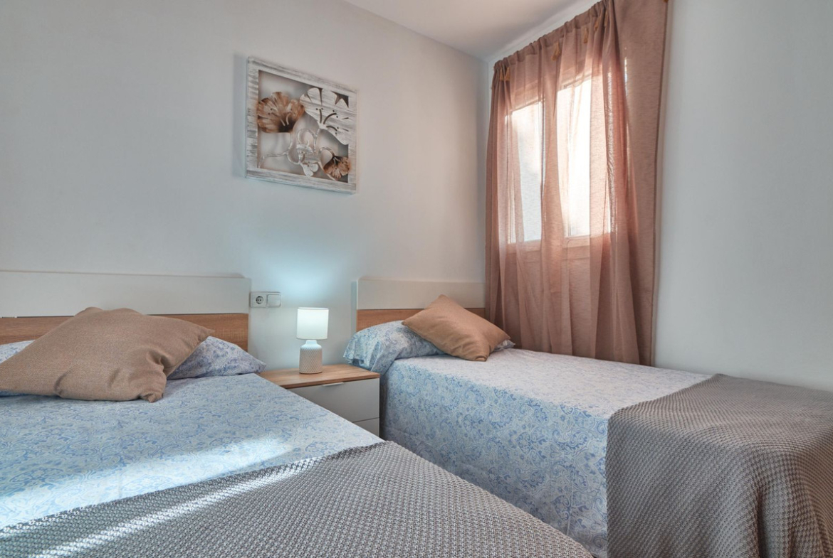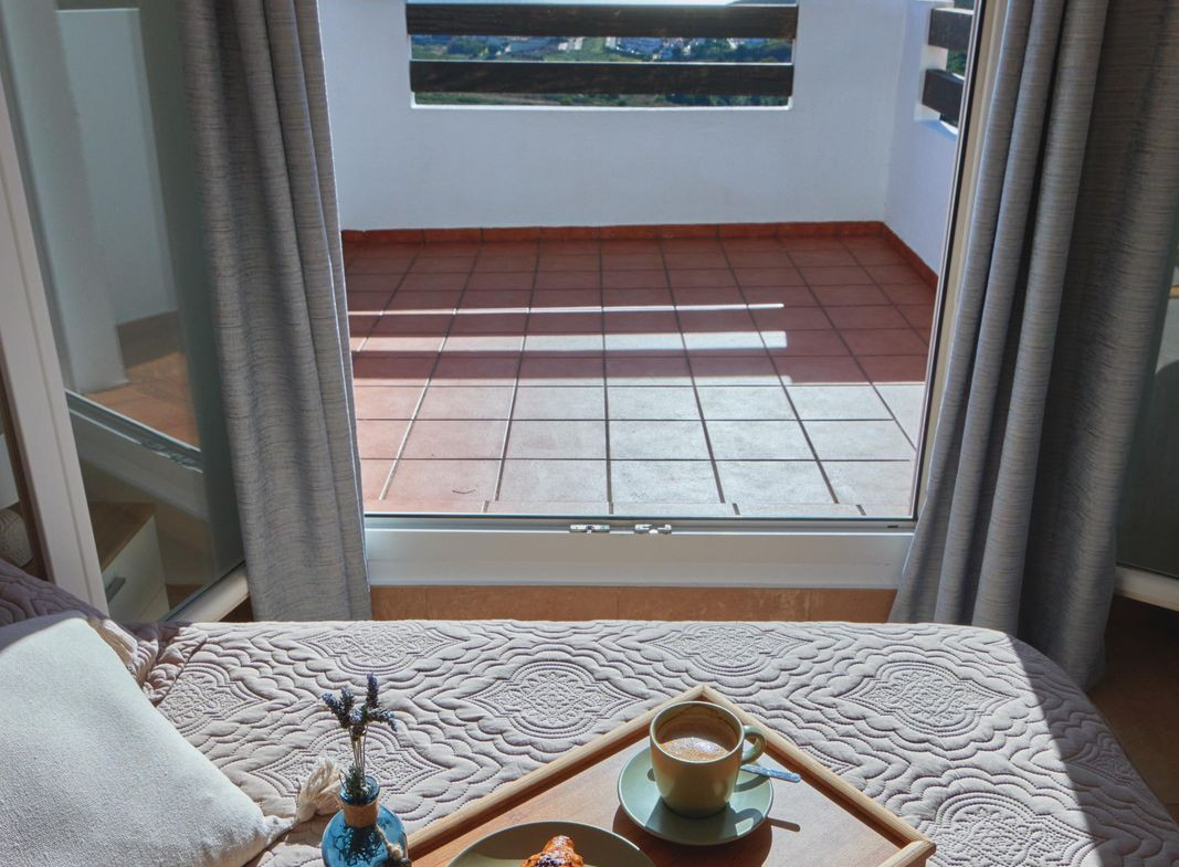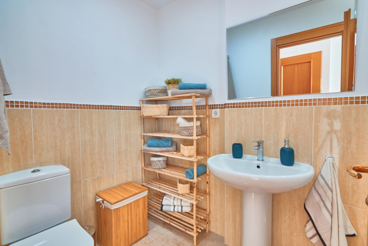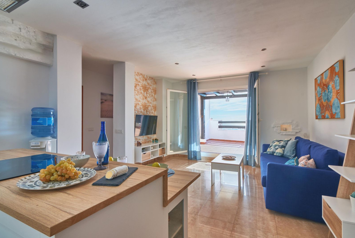 This comfortable apartment with a private terrace and storage room at its entrance, offers two bedrooms, one of which has an en-suite bathroom and its private terrace and a further bedroom with a family bathroom. Fully fitted open plan kitchen, bright and airy living/dining area leading onto an additional private terrace area boasting stunning direct views towards the Mediterranean sea.