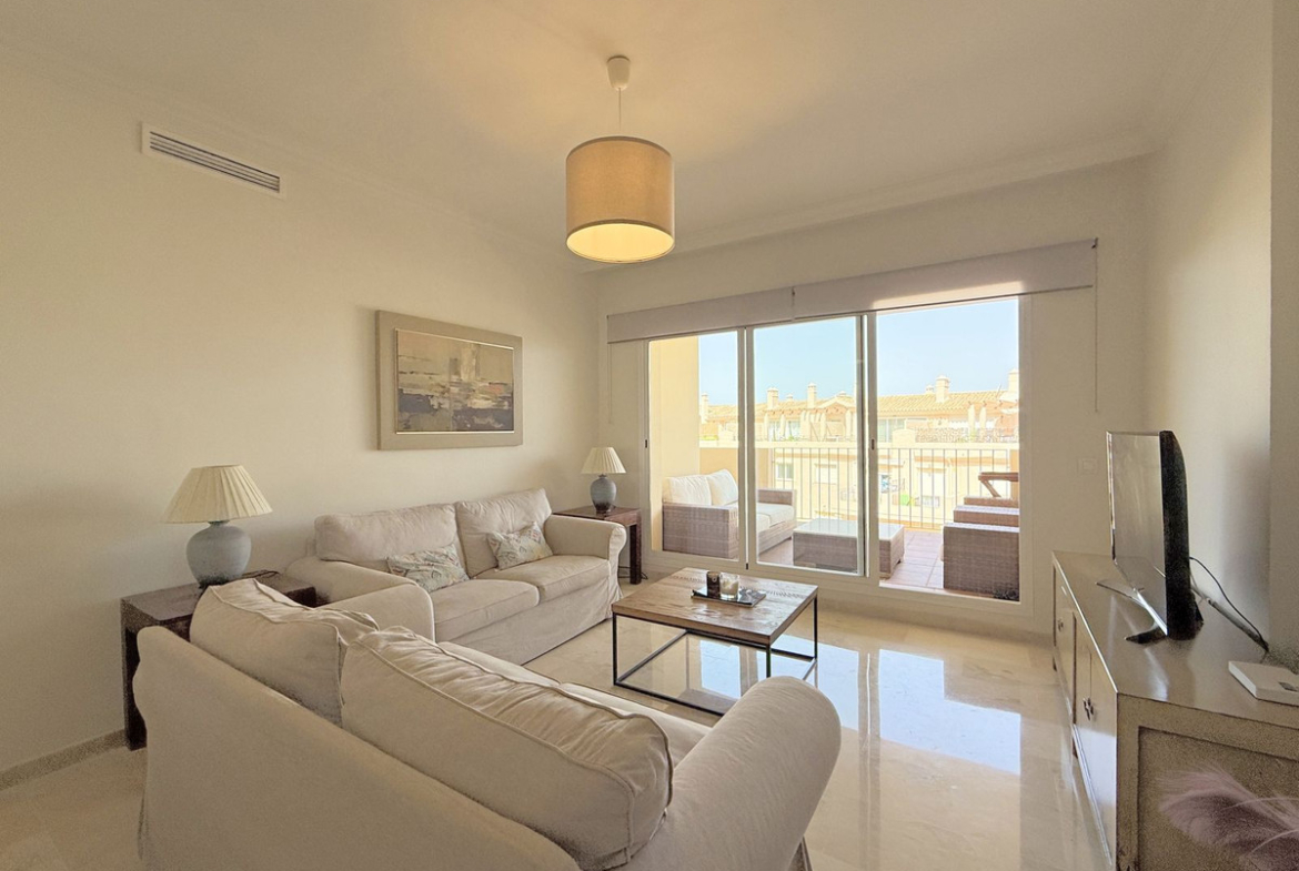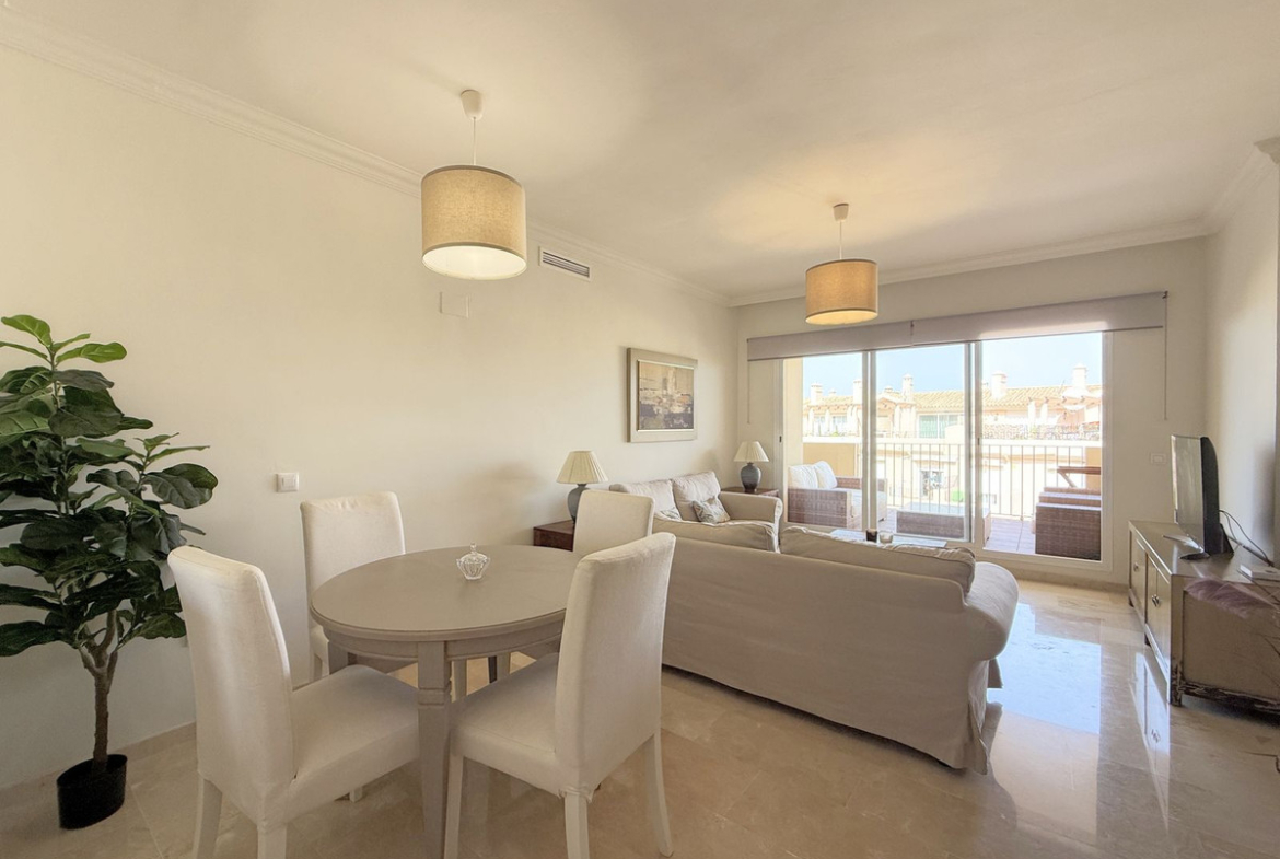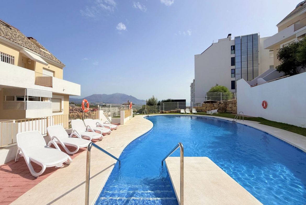 Charming ground-floor apartment with terrace and mountain views – La Duquesa. Beautiful and bright ground-floor apartment located in the sought-after area of La Duquesa, just 5 minutes by car from its charming marina and the beach. Here you can enjoy a wide variety of restaurants, beach bars, and a pleasant promenade perfect for long walks by the sea. The property, with west-facing orientation, enjoys abundant natural light throughout the day. It is laid out on one level and features a cosy terrace connected to the living room, ideal for al fresco dining and relaxing moments. The apartment is in excellent condition, fully equipped, and ready to move into. It is part of a well-maintained complex with extensive green areas, a communal swimming pool, and a unique extra: a rooftop solarium with jacuzzi and kitchen that owners can reserve for private use. In addition, it includes an underground parking space and has a valid tourist license, making it an excellent opportunity both as a permanent residence and as a high-return investment. Don’t miss this opportunity – book your visit today.