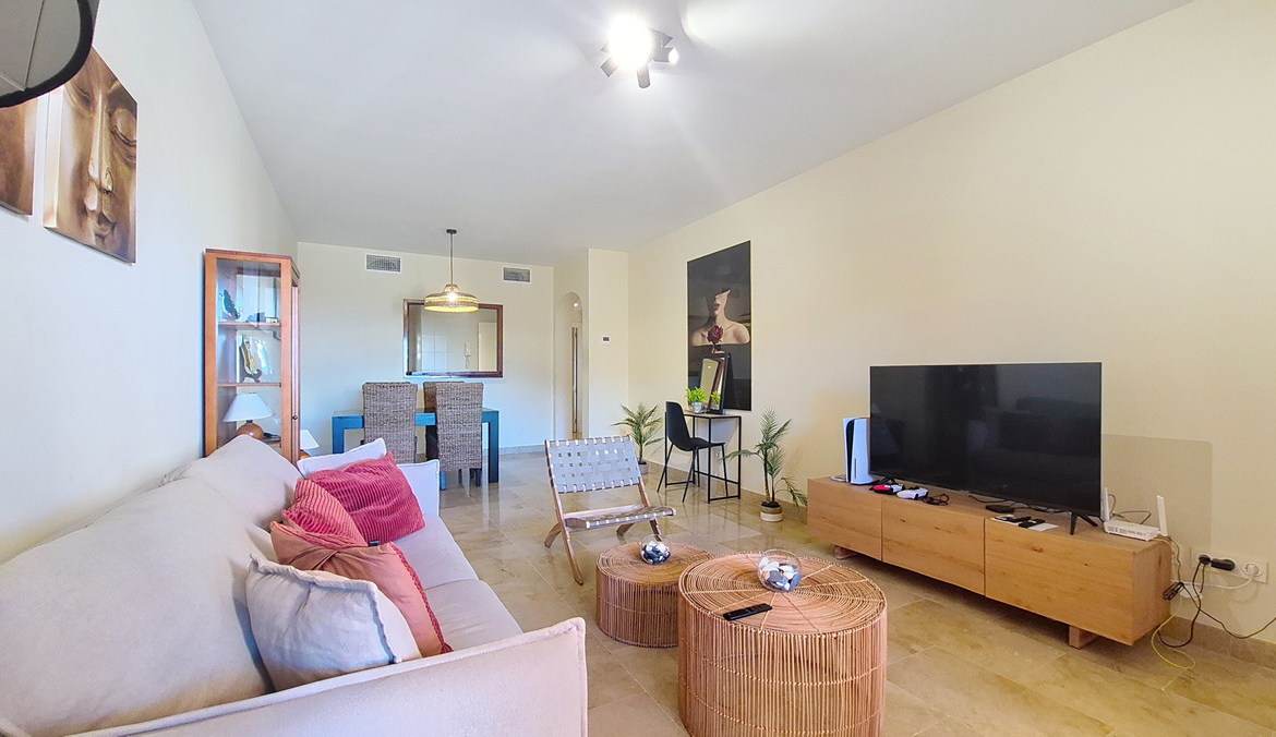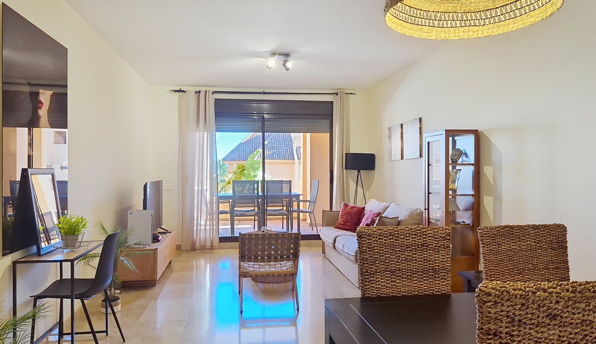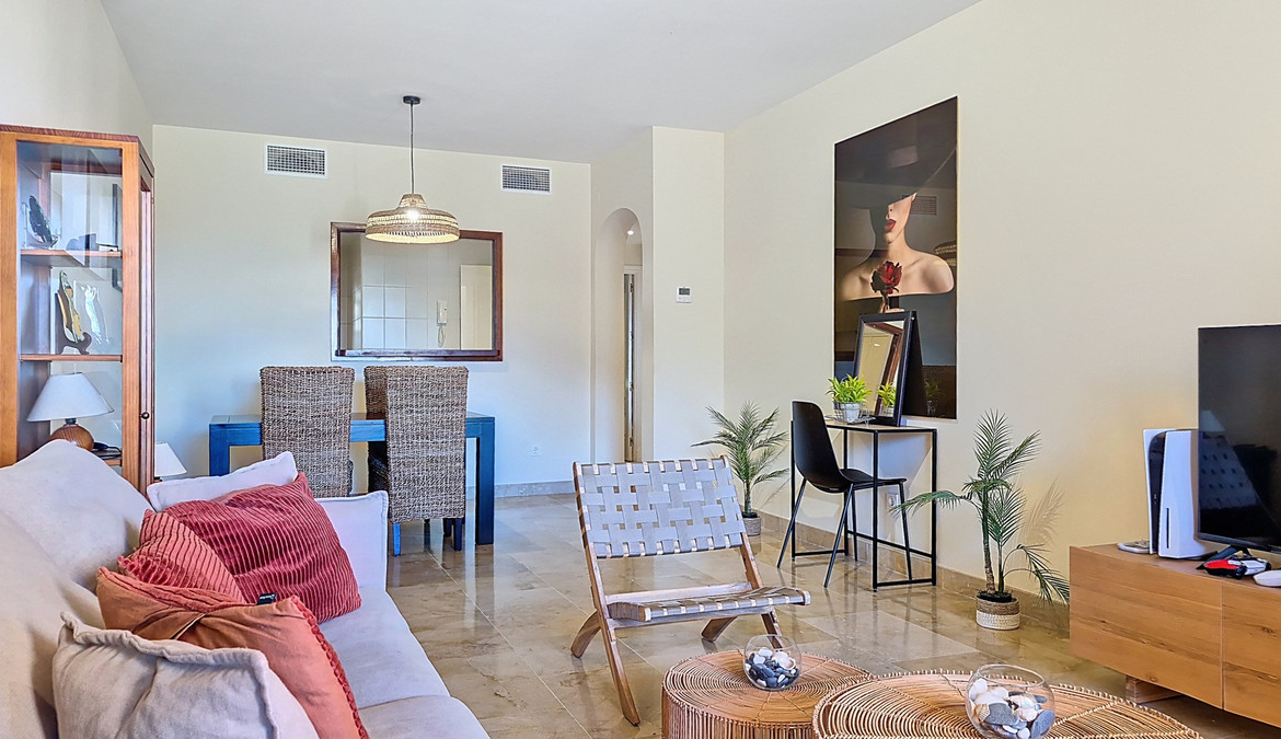 Located in a private gated community with 24-hour security, this spacious and very bright apartment is sold fully furnished. Set on an elevated ground floor with an excellent layout, it features a large 26 sqm terrace, perfect for enjoying the sun all year round.
