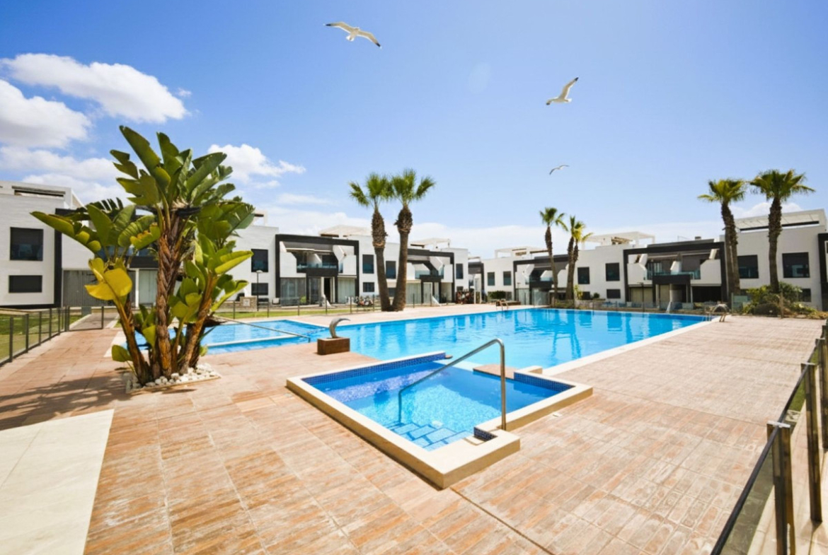 Just 80 mt from the emblematic Zenia Boulevard Shopping Centre, we find this spectacular ground floor Bungalow, modern style construction, semi-new with 2 bedrooms, 2 bathrooms (1 of them en suite), large kitchen specially designed American style fully equipped with high end appliances, spacious living room with access to its large terrace. It is a very bright and warm property special for all year round living or holiday home. Furnished in a modern style, as well as being equipped with many extras such as: Air conditioning, security doors, fibre optics ect.