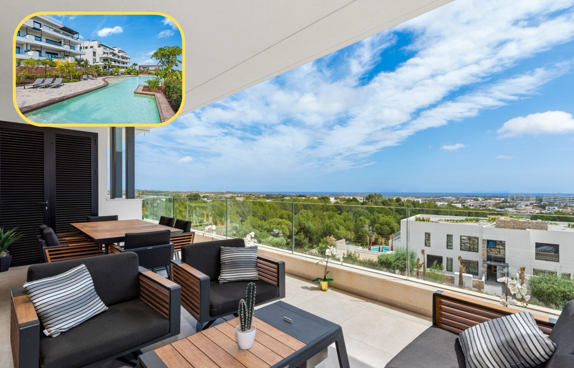 Immediately ready to move in and fully furnished Luxury apartment with panoramic views over the coastline located in one of the most prestigious resorts of the Costa Blanca; Las Colinas Golf & Country Club. This apartment is immediately available and comes: Fully furnished. The latest home automation. Kitchen appliances. Induction air conditioning provides both heat and cooling throughout the home. Underfloor heating in the bathrooms. LED and mood lighting. Electric shutters. Underground private parking space. Beautiful communal gardens with swimming pools.