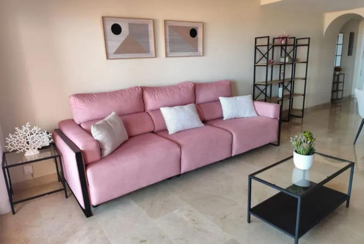 – Living room, designed to have 2 environments, with XXL sofa to enjoy the 65 inch LG QNED TV.