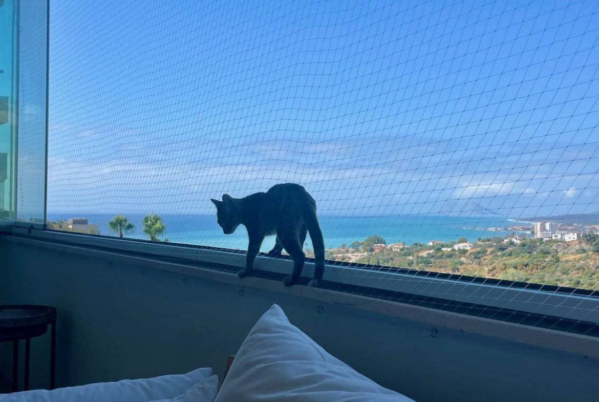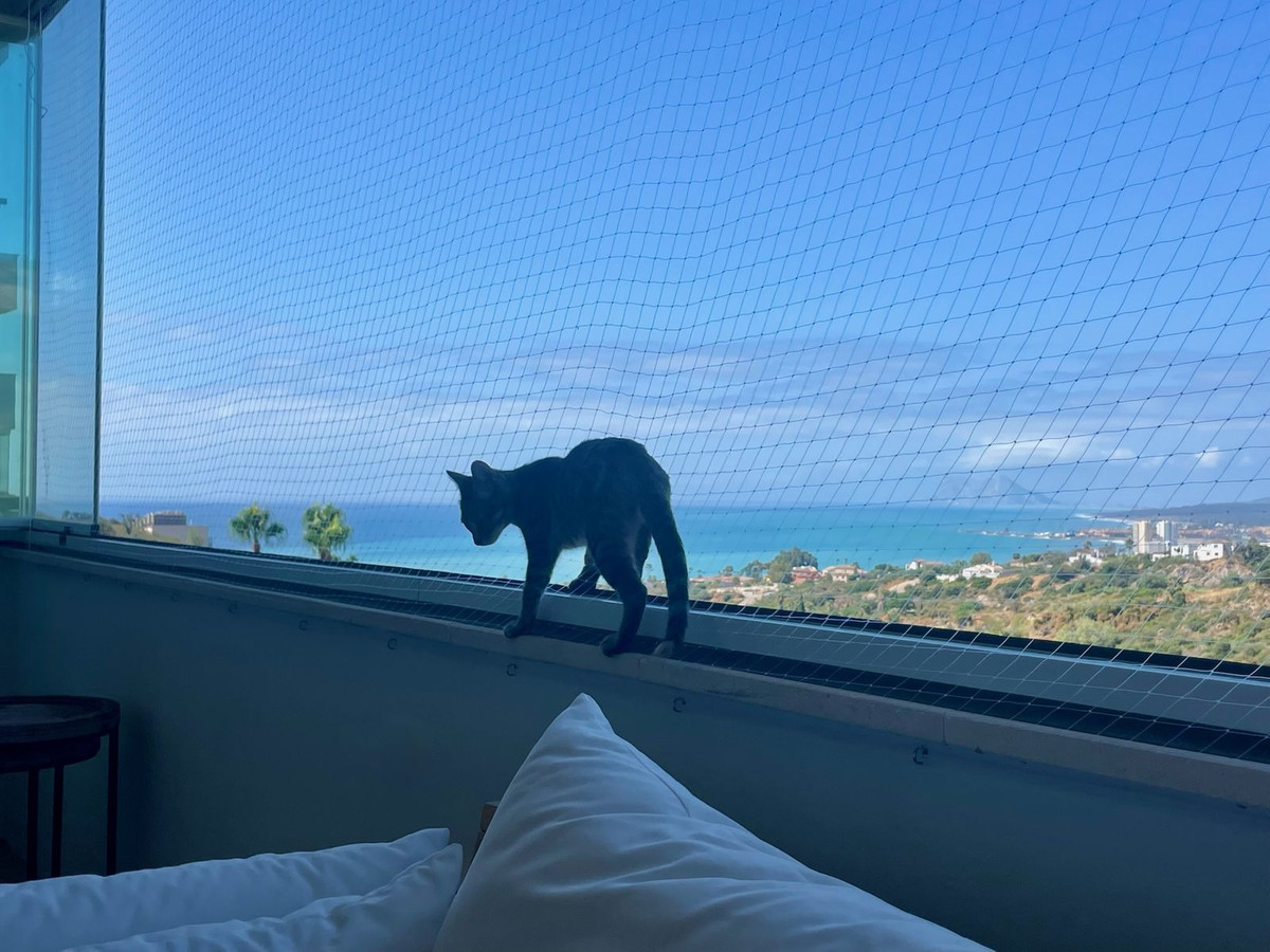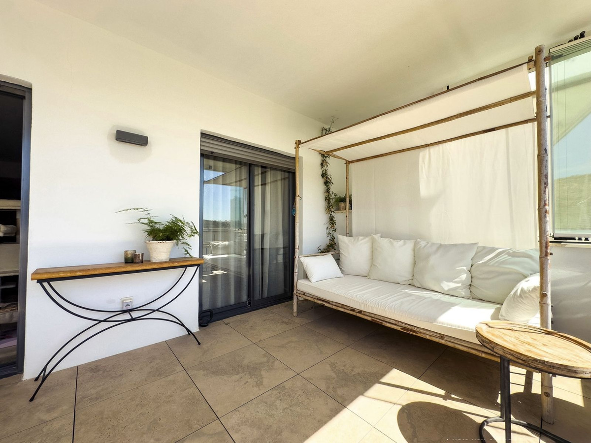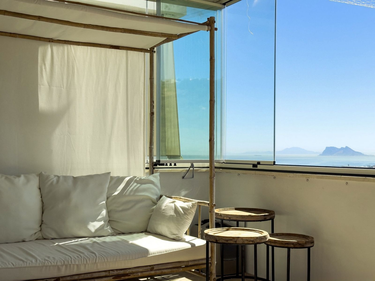 The terrace, slightly elevated to preserve the view even while seated, offers a breathtaking panorama of the Mediterranean, the Rock of Gibraltar, and the Moroccan coastline — all while maintaining privacy thanks to a discreet low wall.