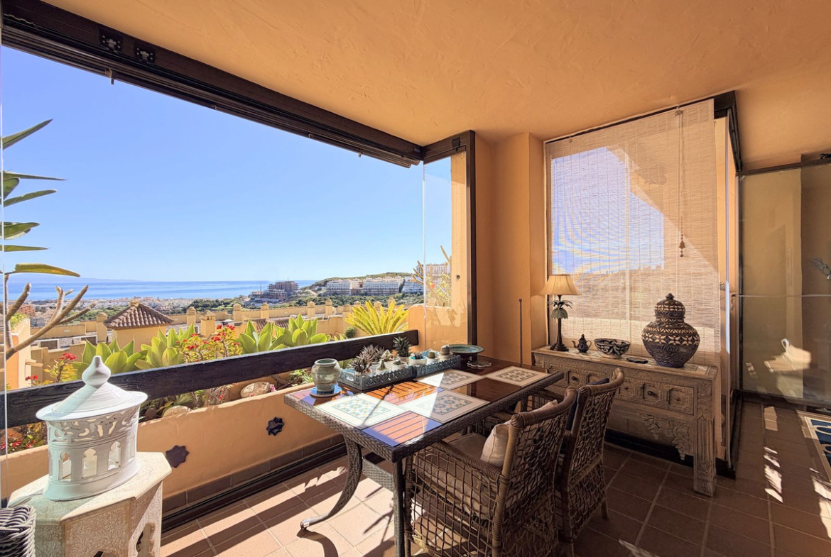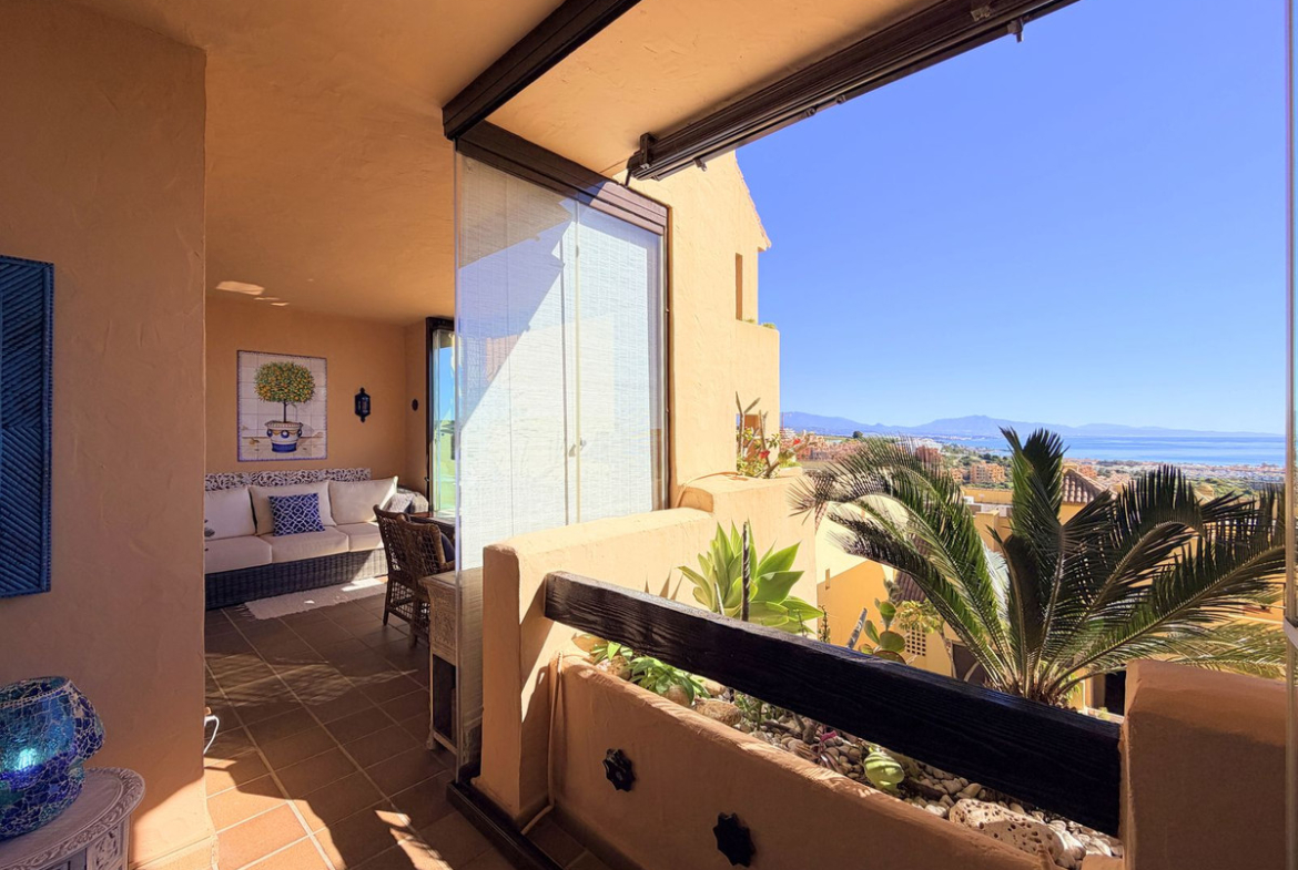 APARTMENT WITH SPACIOUS TERRACE AND STUNNING SEA VIEWS, MANILVA. Discover this magnificent 2-bedroom, 2-bathroom property located in a well-maintained and highly sought-after urbanization in Manilva, ideal both as a permanent residence or an investment. This apartment, newly introduced to the market, stands out for its excellent condition and high-quality upgrades, ready to move into.