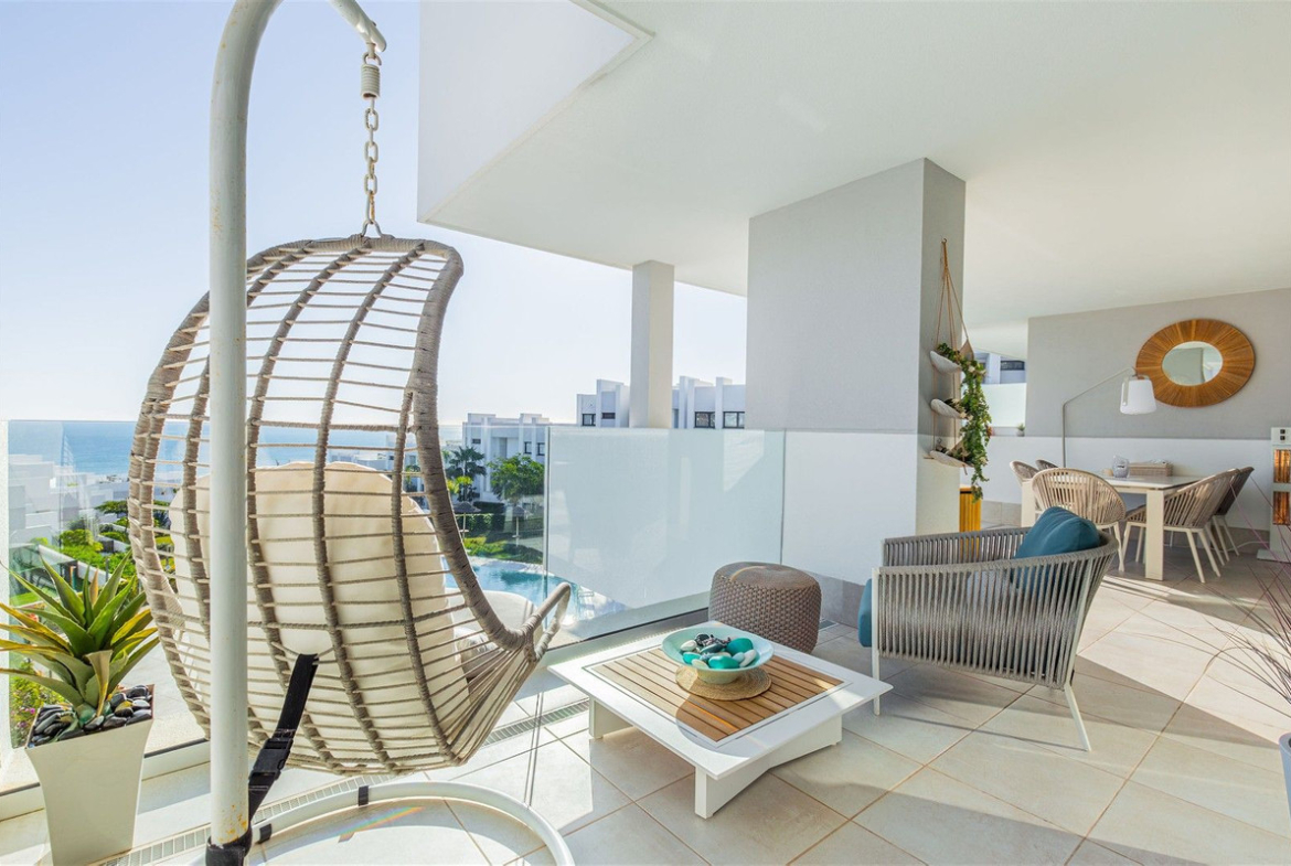 This bright and spacious 2-bedroom, 2-bathroom apartment is designed to maximize natural light and comfort. Its well-planned layout creates open, airy interiors that flow seamlessly onto a large terrace with stunning sea views, offering complete privacy perfect for relaxing or entertaining.