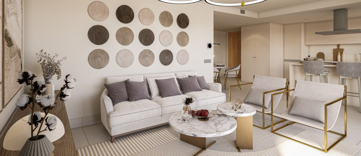 The apartments have 2 or 3 bedrooms and 2 full bathrooms. They are southeast or southwest facing, with many homes enjoying sea views, allowing you to admire the coastal scenery from your own home. Every home has a terrace, and some also have a garden or solarium, depending on the design project. There are penthouse apartments with solarium terraces available.