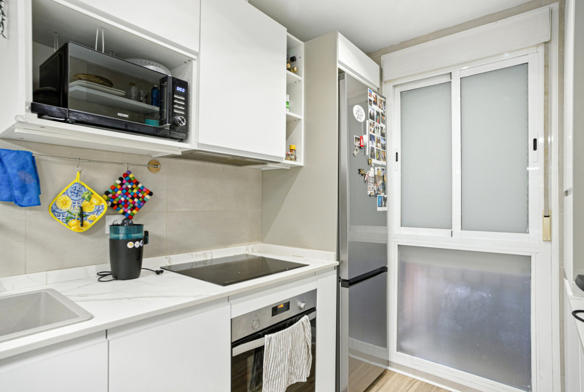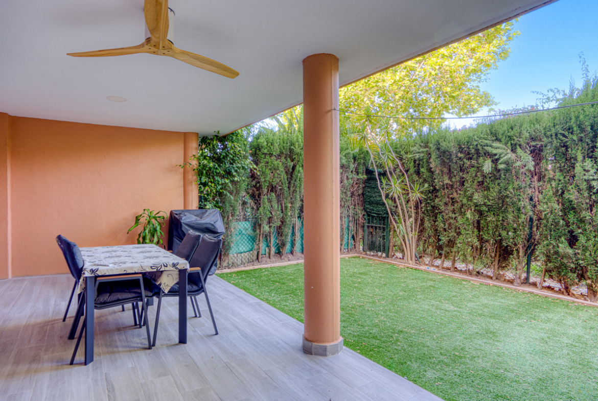 Fantastic opportunity to acquire a spacious ground floor apartment with a private garden and terrace, located in the prestigious and well-connected area of East Marbella. The property is situated close to the sea, supermarkets, restaurants, and all essential services, offering both comfort and an excellent location in one of Marbella’s most sought-after coastal areas. Set within a gated community, the complex features a swimming pool, large communal gardens, a paddle tennis court, and a children’s playground, perfect for enjoying a relaxed and family-friendly lifestyle. With a west-facing orientation, the apartment benefits from afternoon sun and a peaceful atmosphere, ideal for relaxing or entertaining. It offers a spacious living room with direct access to the terrace and garden, a fully equipped kitchen, two well-proportioned bedrooms, and two bathrooms, one of them en suite. Additional features include air conditioning, a private underground parking space, a storage room, and fitted wardrobes, making this a perfect property for permanent living, a holiday home, or a rental investment.