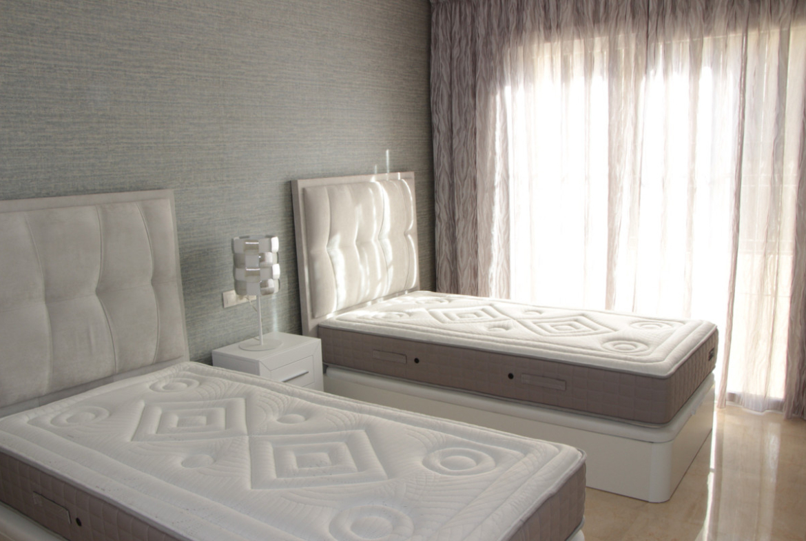 The apartment is tastefully decorated, has central airco for heating and cooling, underfloor heating in the main bathroom, safe, black our curtains and electric awning on the main terrace.