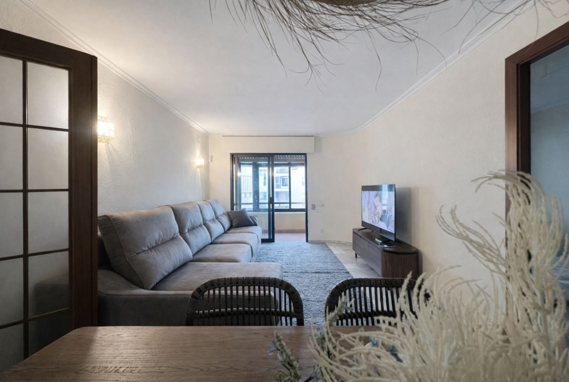 The apartment offers 110 built sqm, very well distributed, comprising two spacious bedrooms, one generous bathroom, a large living room, and a separate kitchen, renovated and in good condition, with an additional practical space ideal for laundry or storage.