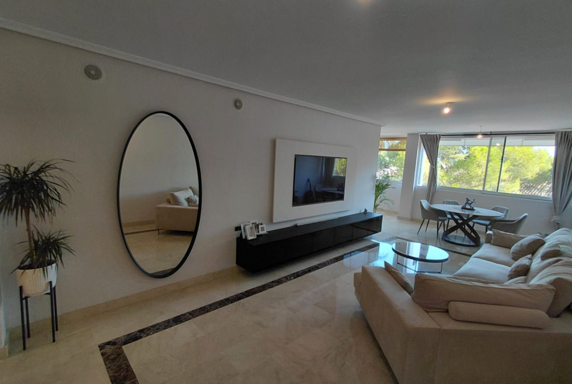 Spacious and cozy living-dining room with abundant natural light thanks to its south-facing orientation and panoramic sea views.