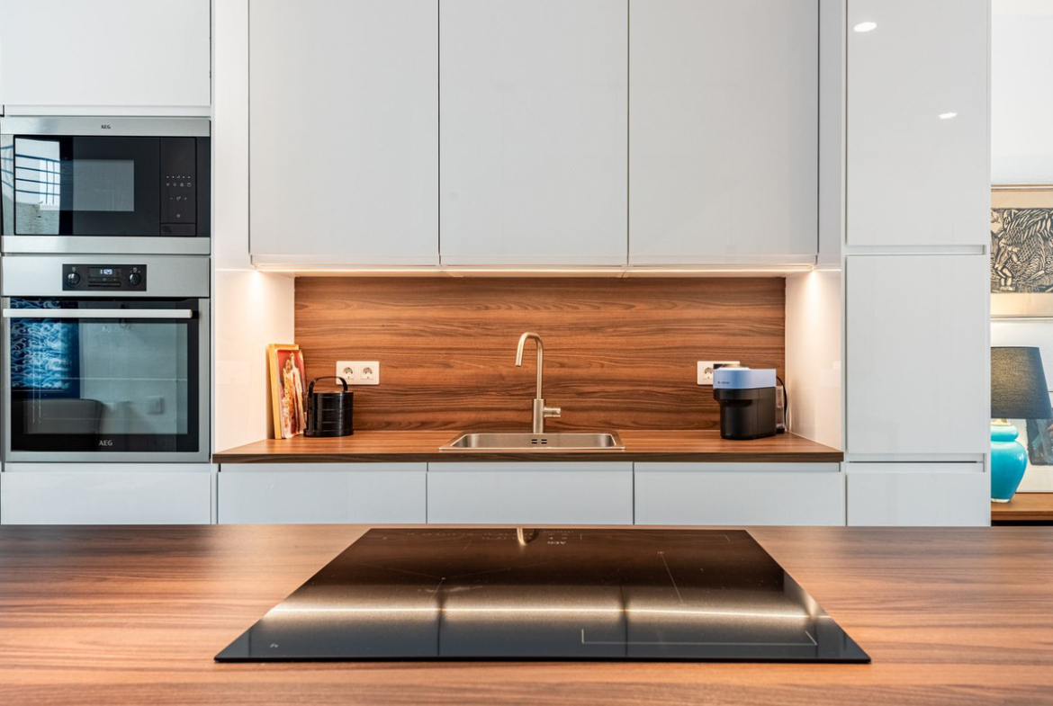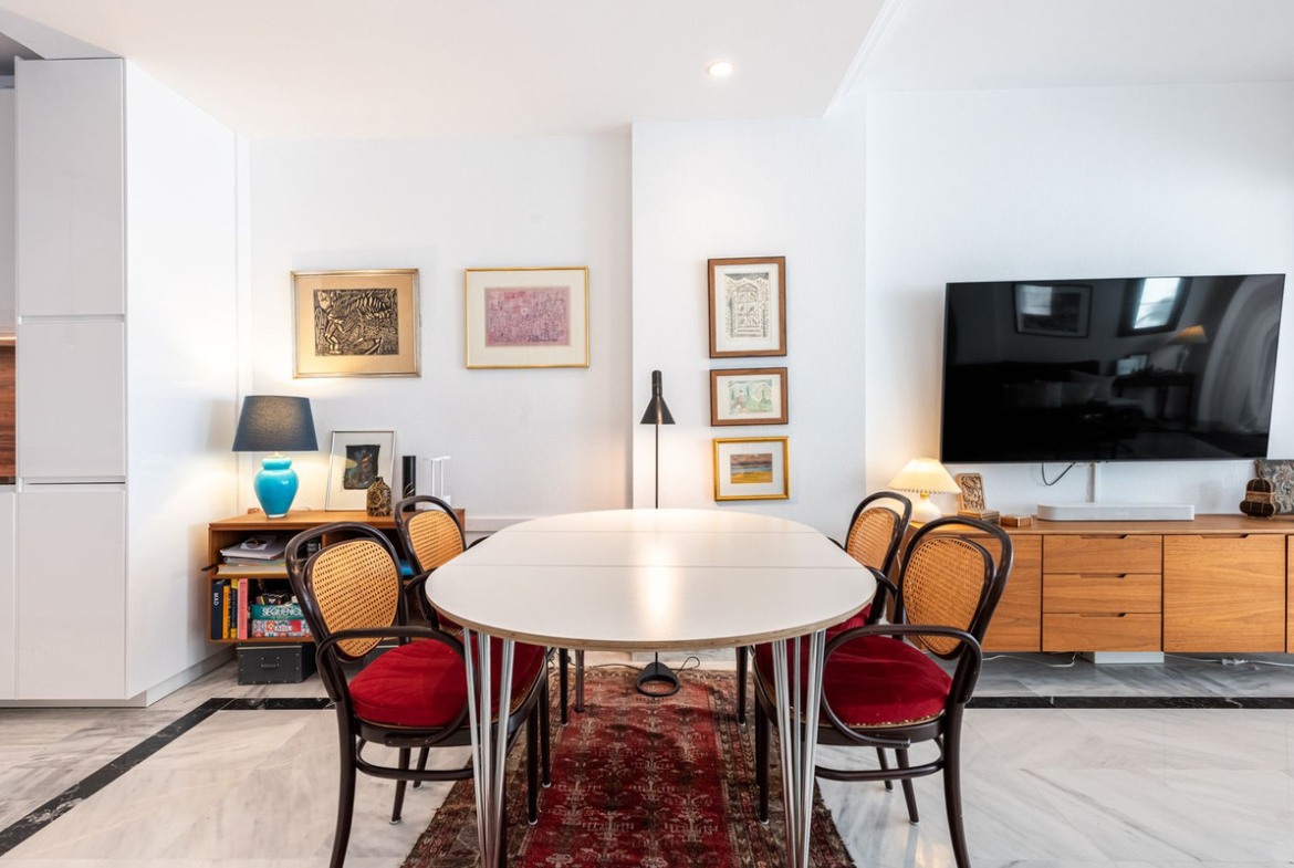 Newly renovated in 2024, the duplex features high-end AEG and Bosch appliances, including an integrated dishwasher and a washer/dryer for ultimate convenience. The brand-new Samsung air conditioning and heating system offers individual air zone control, ensuring personalized comfort year-round.