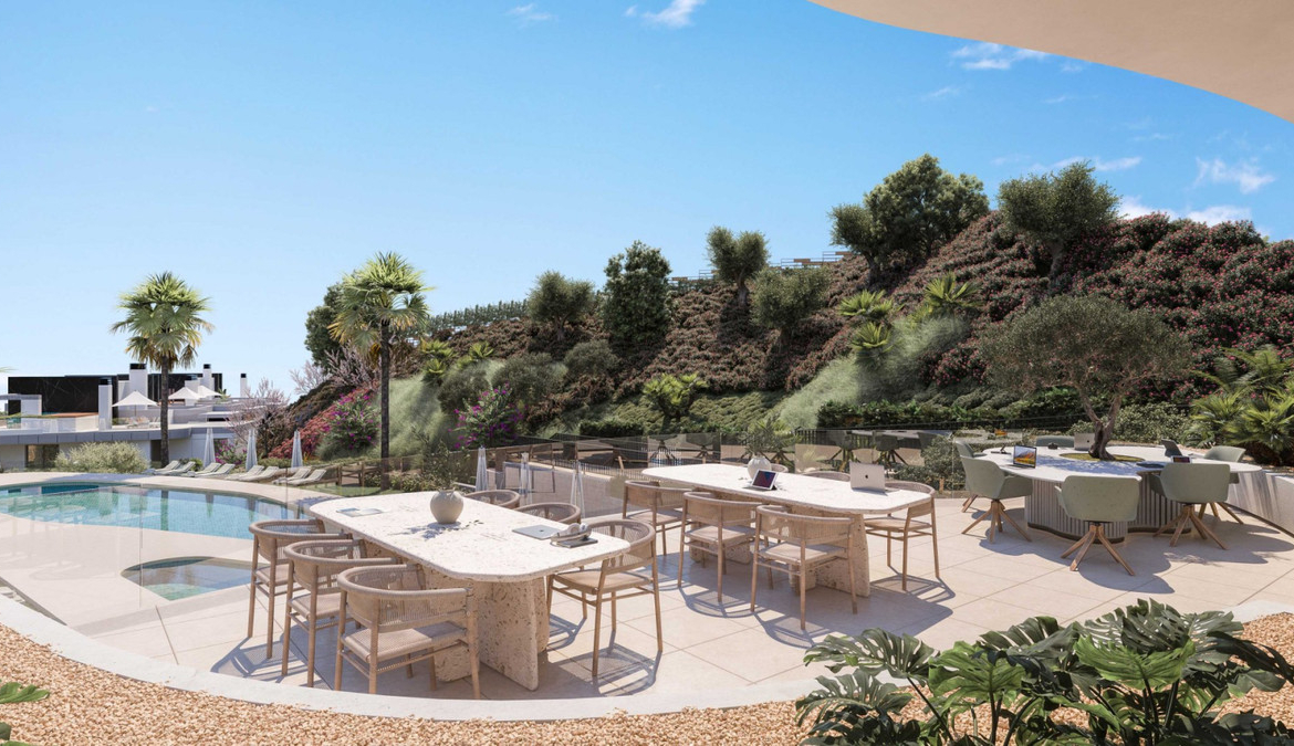 Located at the top of Elviria Hill, one of the most sought-after areas of Marbella East, this development is distinguished by its serene and natural setting, surrounded by lush pine forests and open views of the mountains.