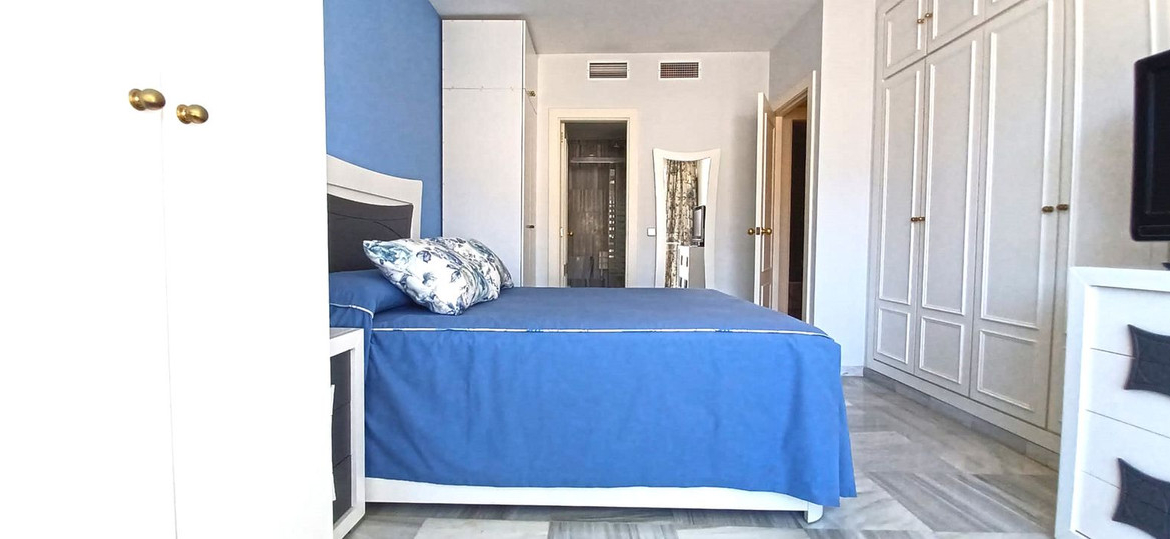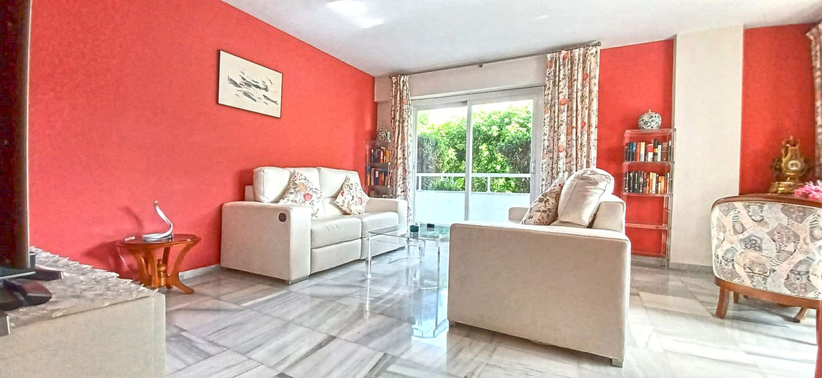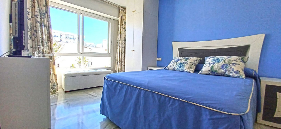 Discover this spacious and bright flat in an iconic building with an exceptional location just 30 metres from the seafront promenade and surrounded by all kinds of shops, cafés, restaurants and services such as private clinics, health centres, public transport, etc. The apartment is part of a fully enclosed community and, in addition to a concierge service, has well-maintained communal areas and a swimming pool surrounded by beautiful communal gardens with a solarium. A property that undoubtedly offers everything you need to enjoy life in Marbella by the sea. It has a total built area of 113 m2 plus communal areas and a garage space included in the price. It is distributed in an entrance hall, a fully furnished kitchen equipped with Siemens appliances with access to a terrace, a spacious living-dining room with 2 exits to terraces, one of which is enclosed and glazed with Lumon and fitted out as a summer dining room, a master bedroom with fitted wardrobes and en-suite bathroom, and a second bedroom with fitted wardrobe and bathroom. There is also the possibility of easily converting a space into a third bedroom, adapting it to your needs. Good quality construction. Hot and cold air conditioning, intercom, double-glazed windows. Marble floors. Optional furniture. This property is not only ideal for living by the sea and its promenade in one of the most privileged areas of Marbella, but also an excellent investment opportunity in a property that is constantly increasing in value and offering high rental yields.