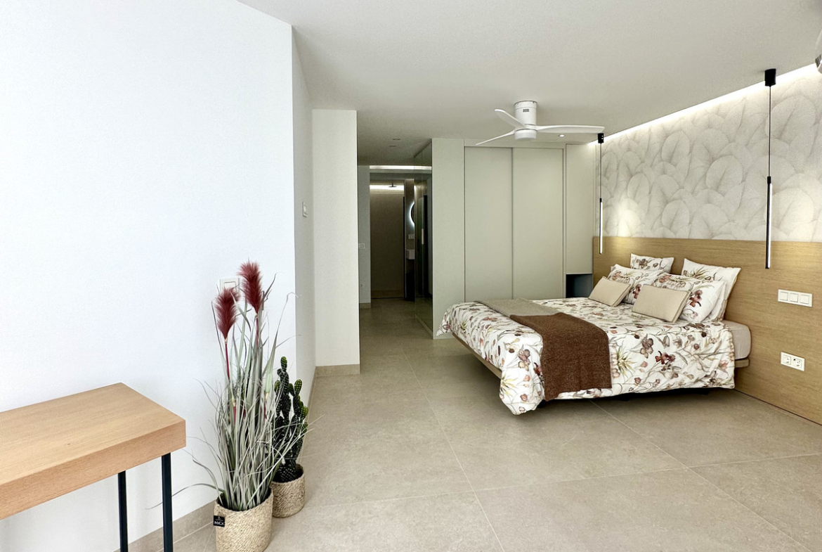 Master bedroom with particular ensuite bathroom and closet dividing these two area includes as well amazing working area with magical sea views.