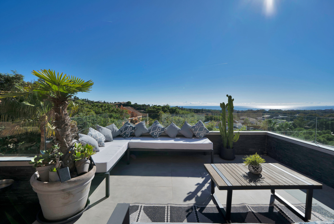 This spectacular duplex penthouse apartment of recent renovation and improvements, located on the second floor in corner, with south west orientation, has stunning panoramic views of the sea, the mountain, Gibraltar, the golf course and the whole environment. In addition, these views can never be blocked, due to their height.