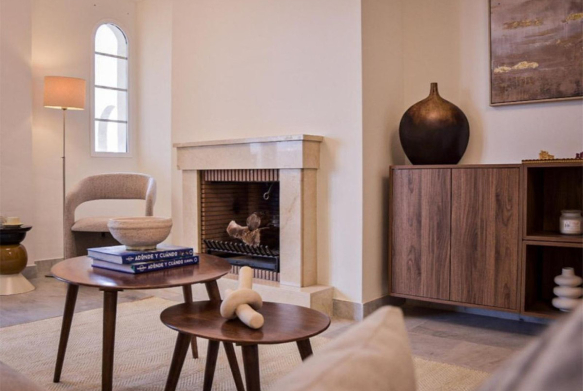 It offers two bedrooms and two bathrooms, one of them en suite. The property has a constructed area of 99 m² and a private terrace of 20 m². It has a fully equipped kitchen, air conditioning, marble floors and a fireplace in the living room. Double-glazed windows, built-in wardrobes and an armored door increase the comfort and security of the home.