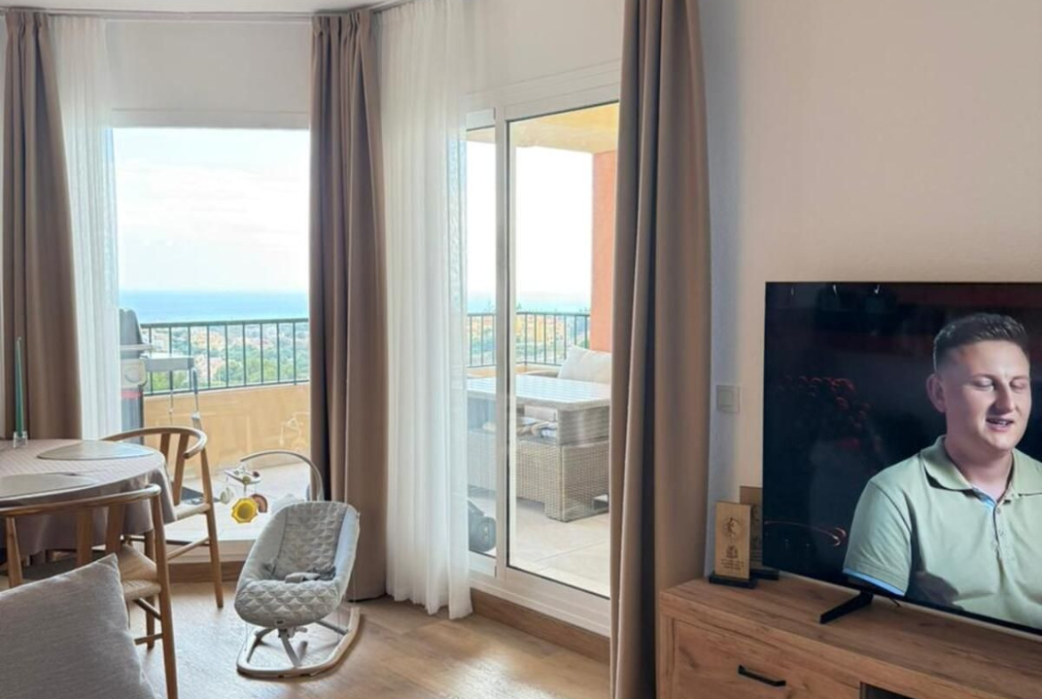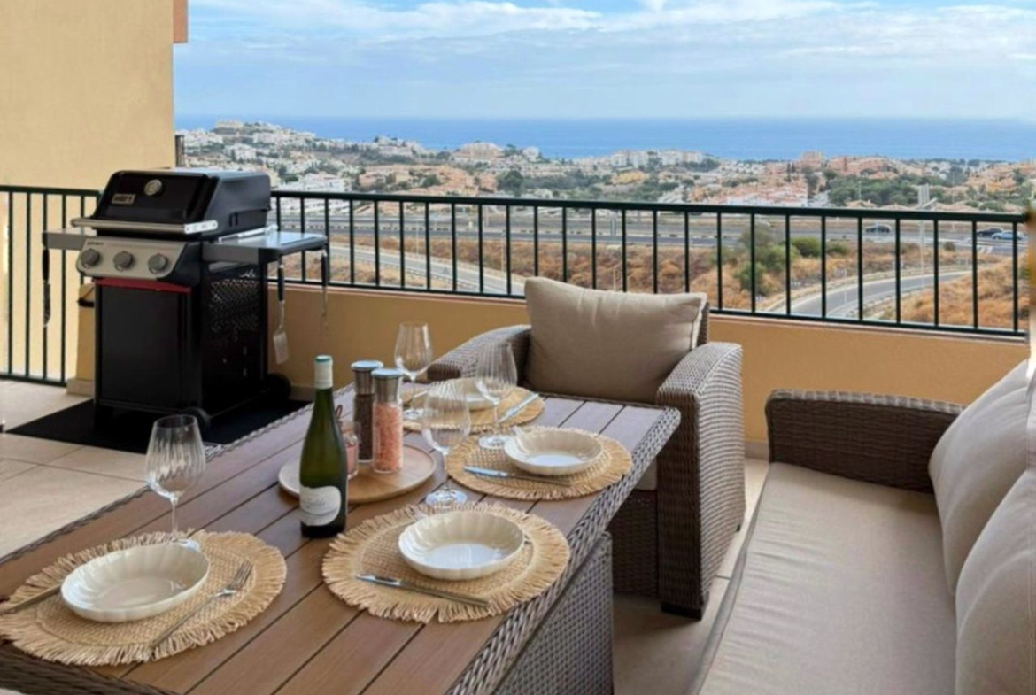 Discover your dream home in this stunning, recently renovated, third-floor, two-bedroom apartment, with a spacious covered terrace and breathtaking sea views in the heart of Riviera del Sol. It offers a beautifully designed living space, perfect for those who crave both elegance and functionality. The thoughtfully crafted layout features two generous bedrooms, two modern bathrooms (including a luxurious en suite), and a fully equipped, high-end kitchen with modern appliances, ensuring every inch of this home is practical yet stylish.