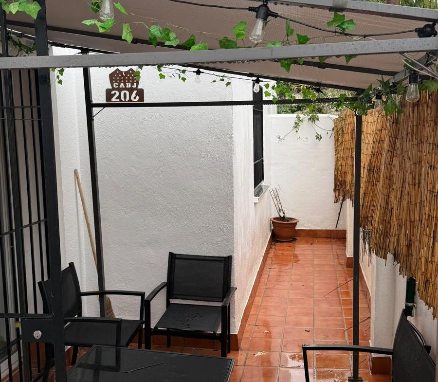 One of the main highlights of this property is its private outdoor space, ideal for enjoying the Mediterranean climate. As shown in the photos, the exterior includes a tiled terrace perfect for outdoor dining or relaxing, as well as an additional area with artificial grass, ideal for families, pets, or simply creating a green and peaceful atmosphere.