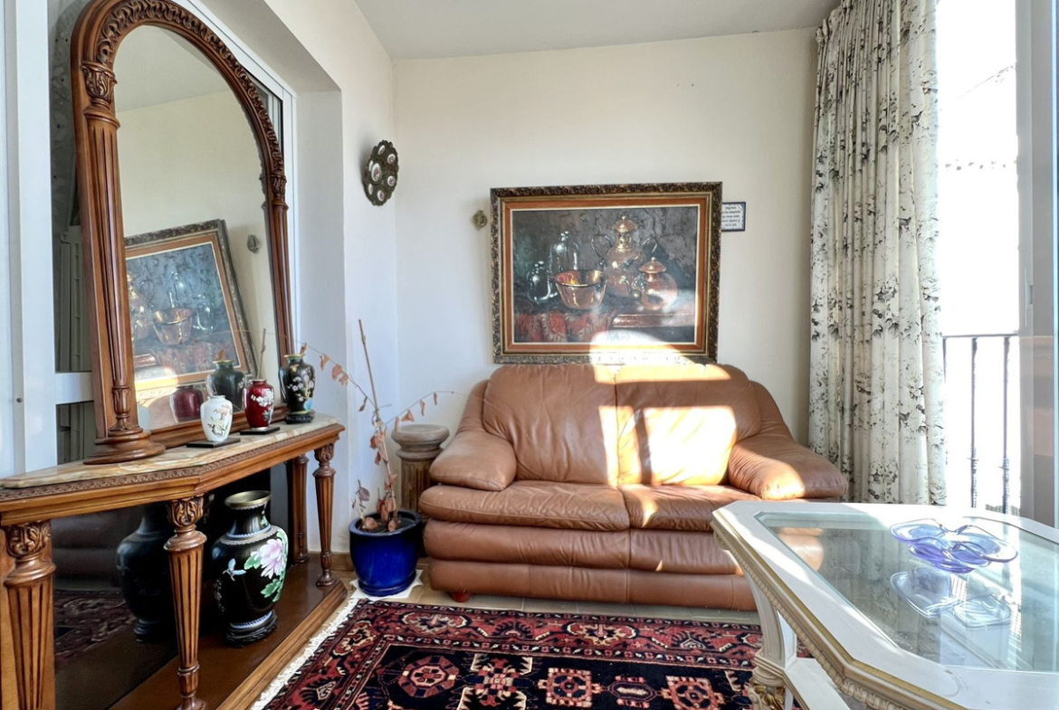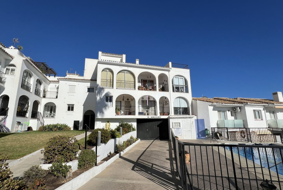 LOVELY TWO-BEDROOM APARTMENT in the heart of Mijas Pueblo boasting AMAZING SEA VIEWS! Located in a quiet residential gated community on the west side of town. Only a short stroll from Bar el Niño and parking area. Situated on a second floor (top floor) this apartment of approx 60 m2 has a living/dining room, fitted kitchen, 2 bedrooms and 1 bathroom. Enclosed terrace is now a sitting room. A/C. Beautiful views to Mediterranean sea, communal swimming pool and mature gardens. Nice holiday flat. In need of renovations and TLC. VIEWINGS ARE RECOMMENDED!