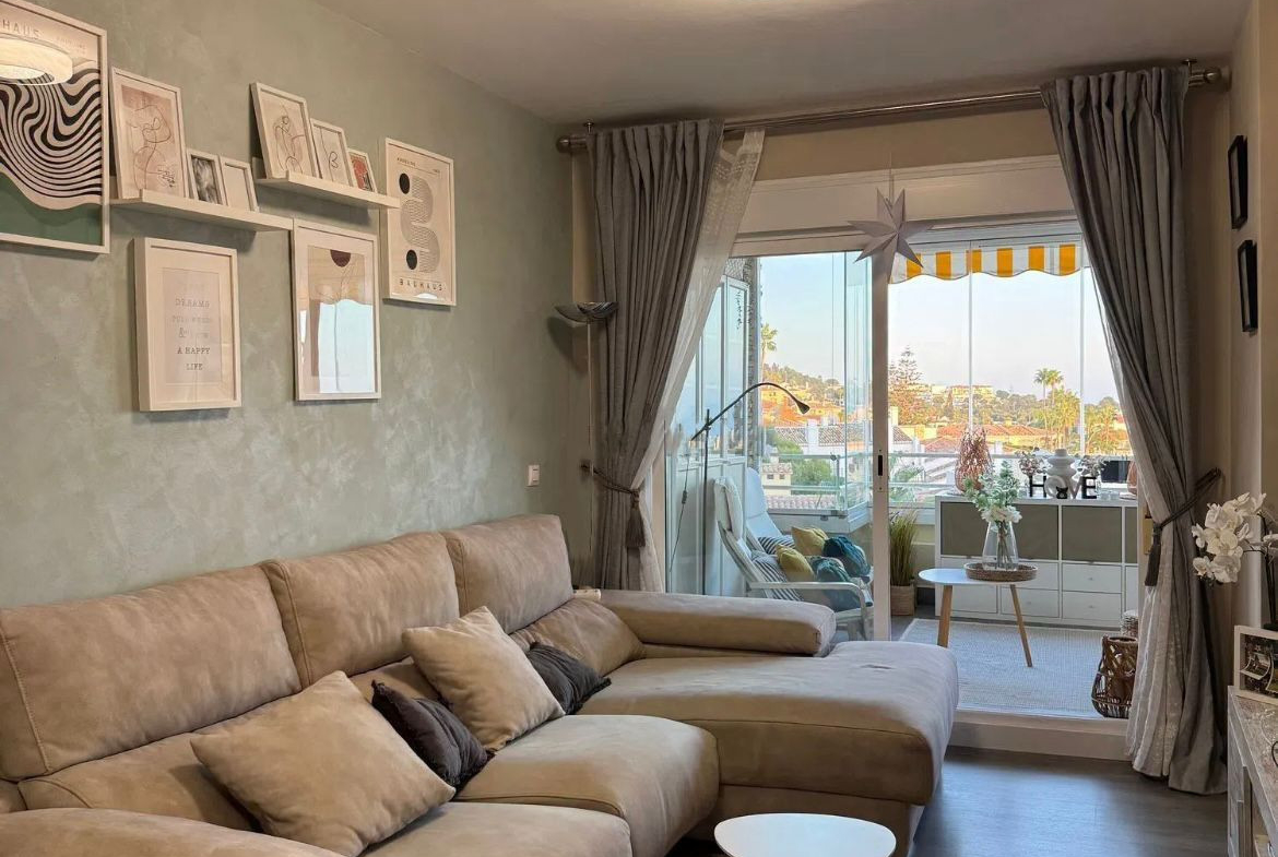 Experience Mediterranean living at its best in this beautiful fully renovated 2-bedroom, 1-bathroom apartment, ideally situated between Fuengirola and Marbella. Flooded with natural light, the home features a spacious glazed terrace with panoramic, unobstructed sea views, creating a serene atmosphere throughout the property.
