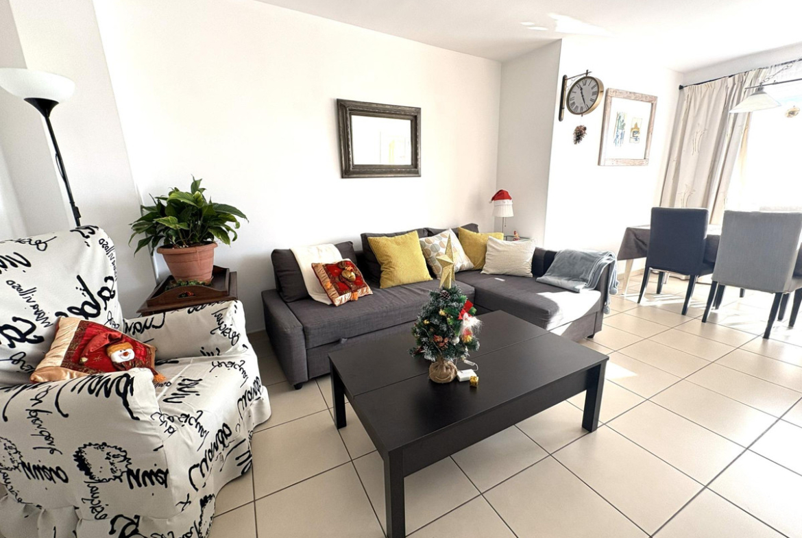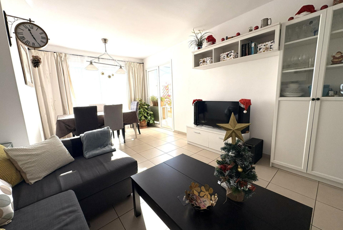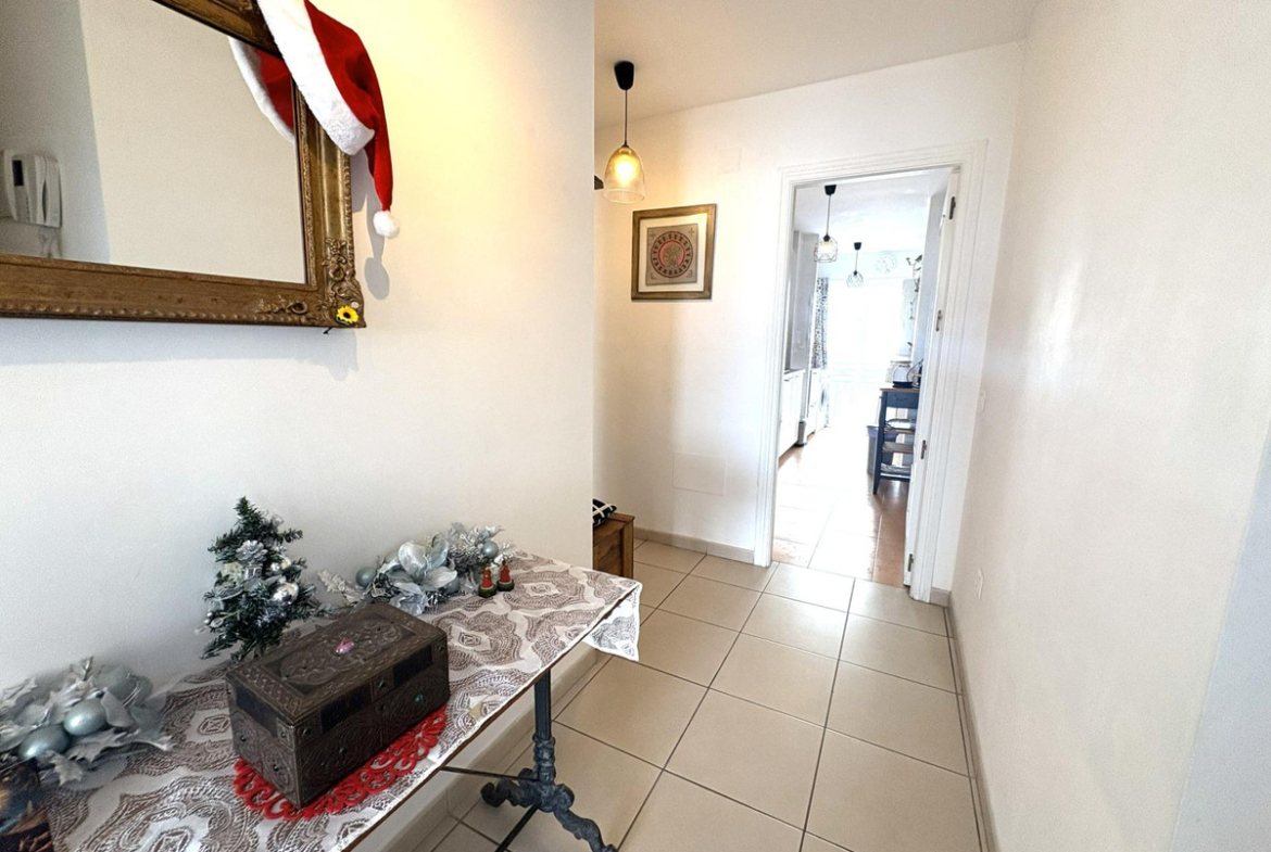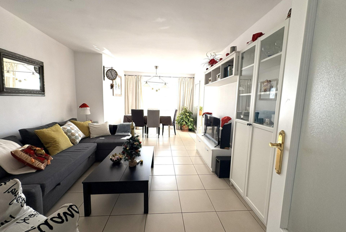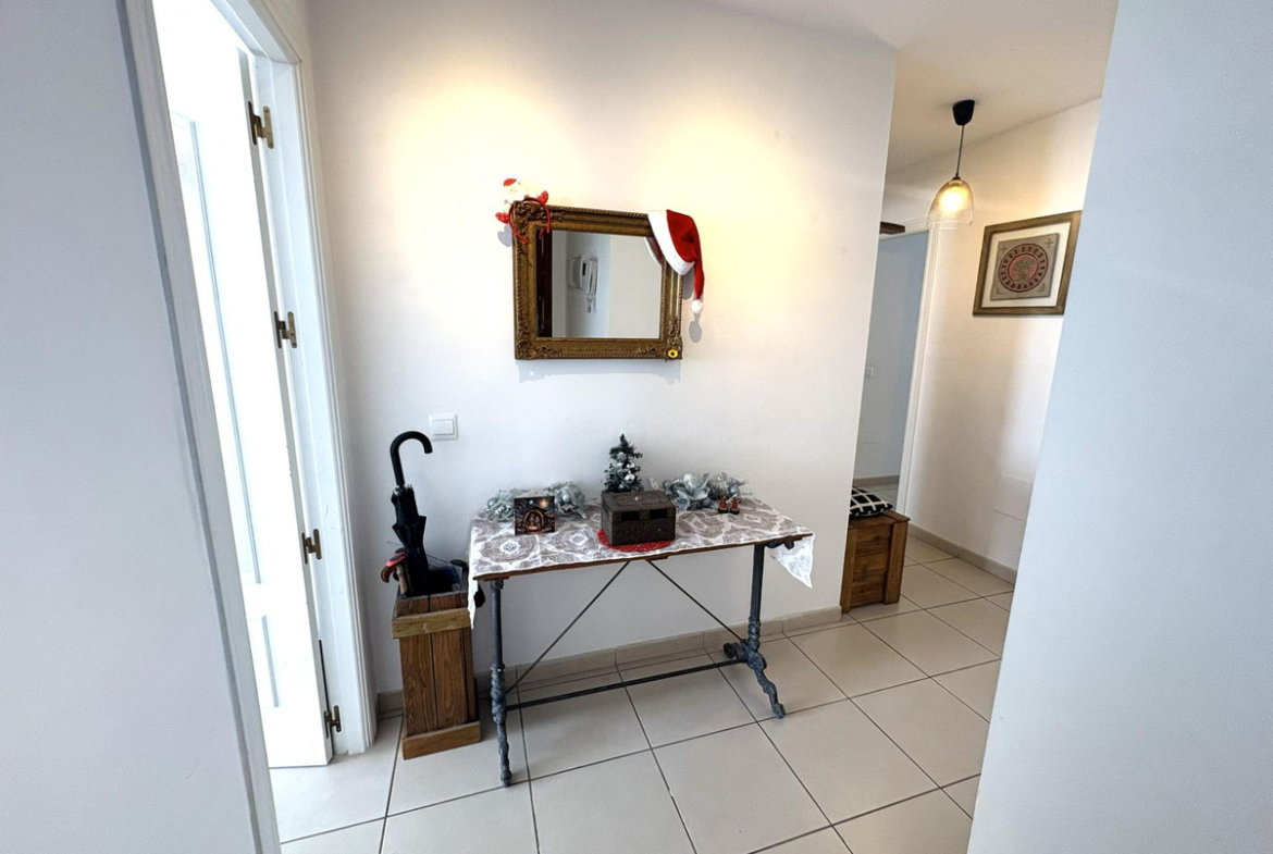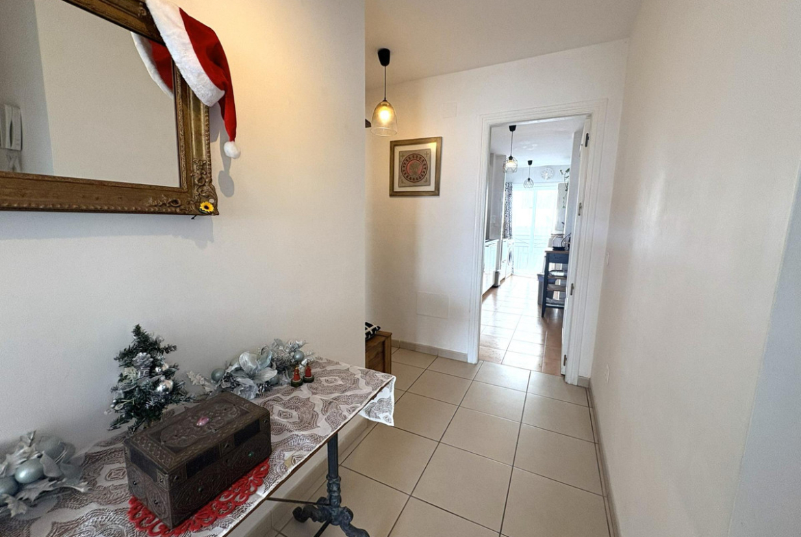 It offers a large, recently renovated kitchen, modern and fully functional, perfect for everyday use. The sleeping area comprises two bedrooms: a guest bedroom with a fitted wardrobe and a generous master bedroom with en-suite bathroom, also with a fitted wardrobe and direct access to the terrace, providing extra comfort and privacy.
