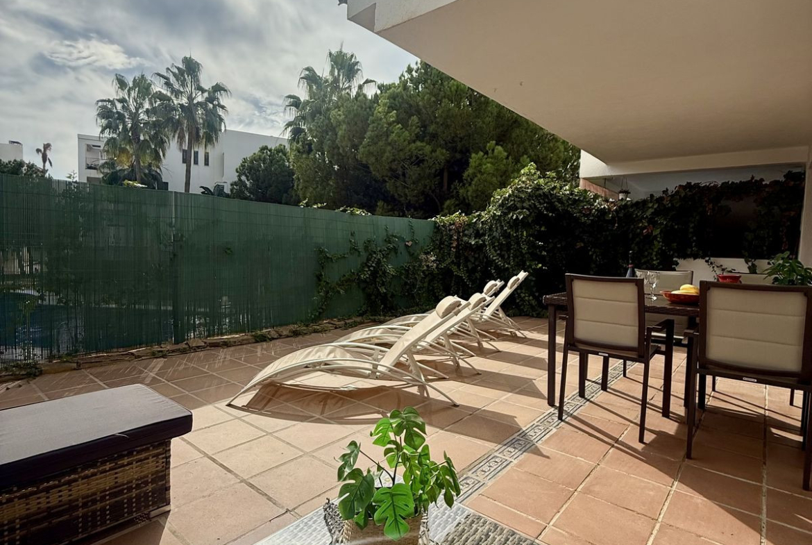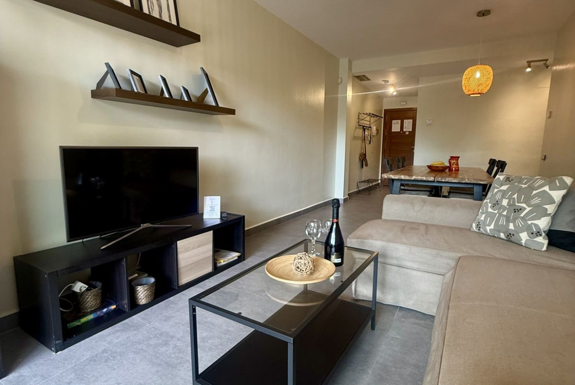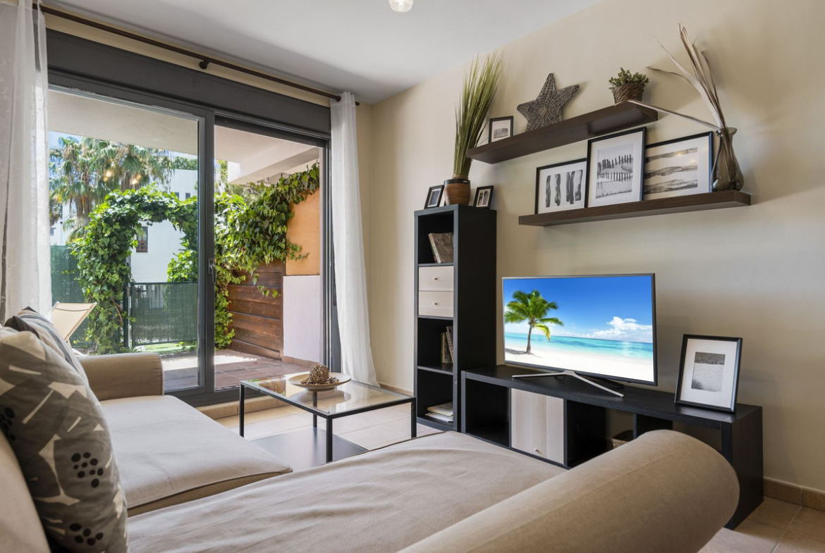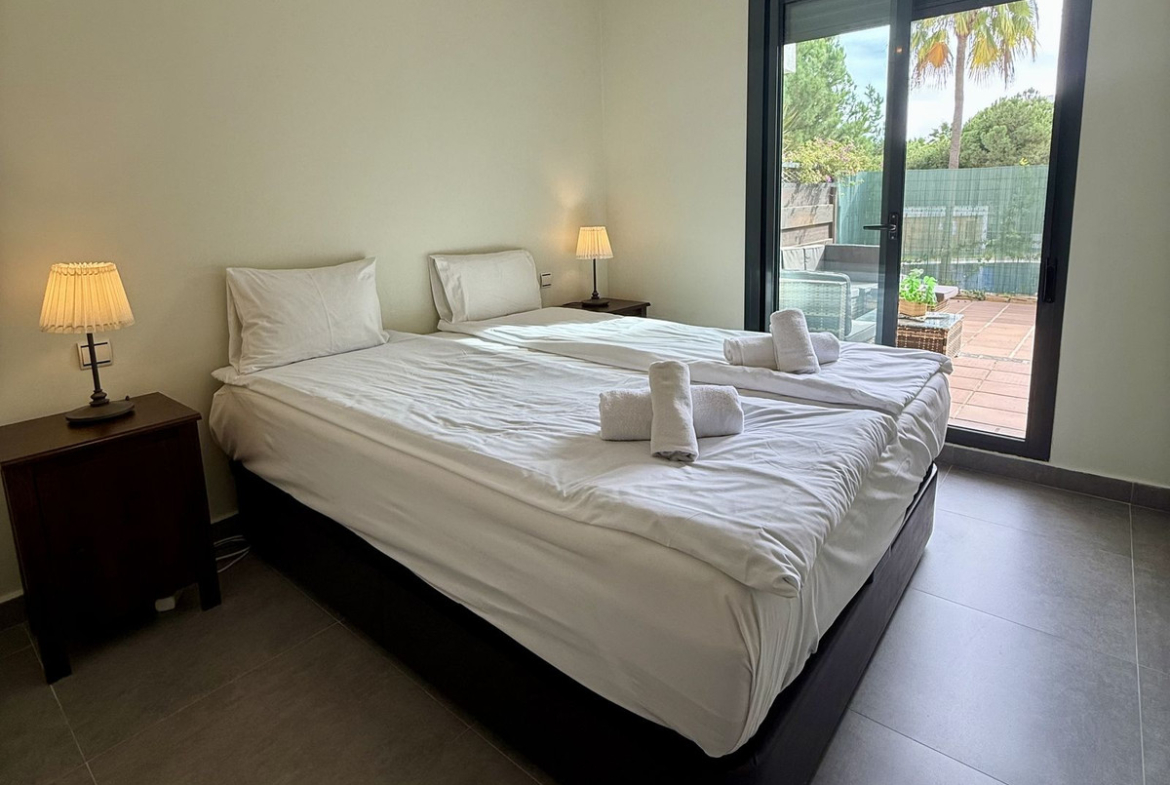 This beautiful apartment is located in the popular Alamar with walking distance to La Cala city centre and the beach. It features 2 bedrooms, 2 bathrooms, a utilityroom, a modern kitchen, a large livingroom with a sofa-bed and a large private terrace with a couple of meters to the pool. There is a padel court available for you in Alamar for free.