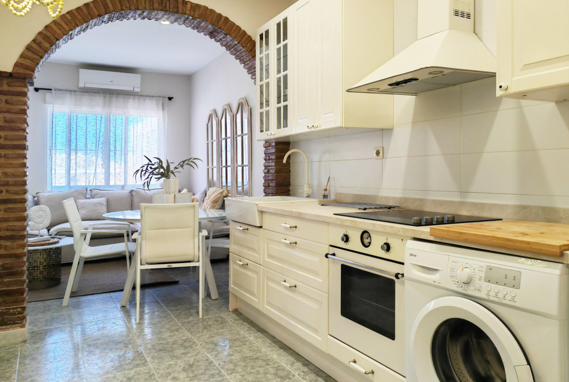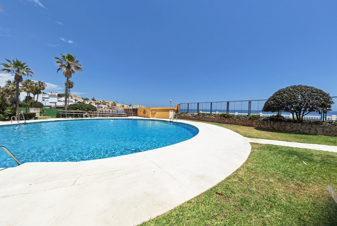 Ground Floor Apartment for sale in , Mijas Costa with 2 bedrooms, 2 bathrooms and with orientation east, with communal swimming pool and communal garden. Regarding property dimensions, it has 58 m² built and 49 m² interior. Has the following facilities front line beach, amenities near, transport near, air conditioning, fully furnished, fully fitted kitchen, kitchen equipped, internet – wi-fi, gated community, garden view, pool view, beach side, close to children playground, close to sea / beach, close to golf, good condition, close to shops, close to port and close to schools.