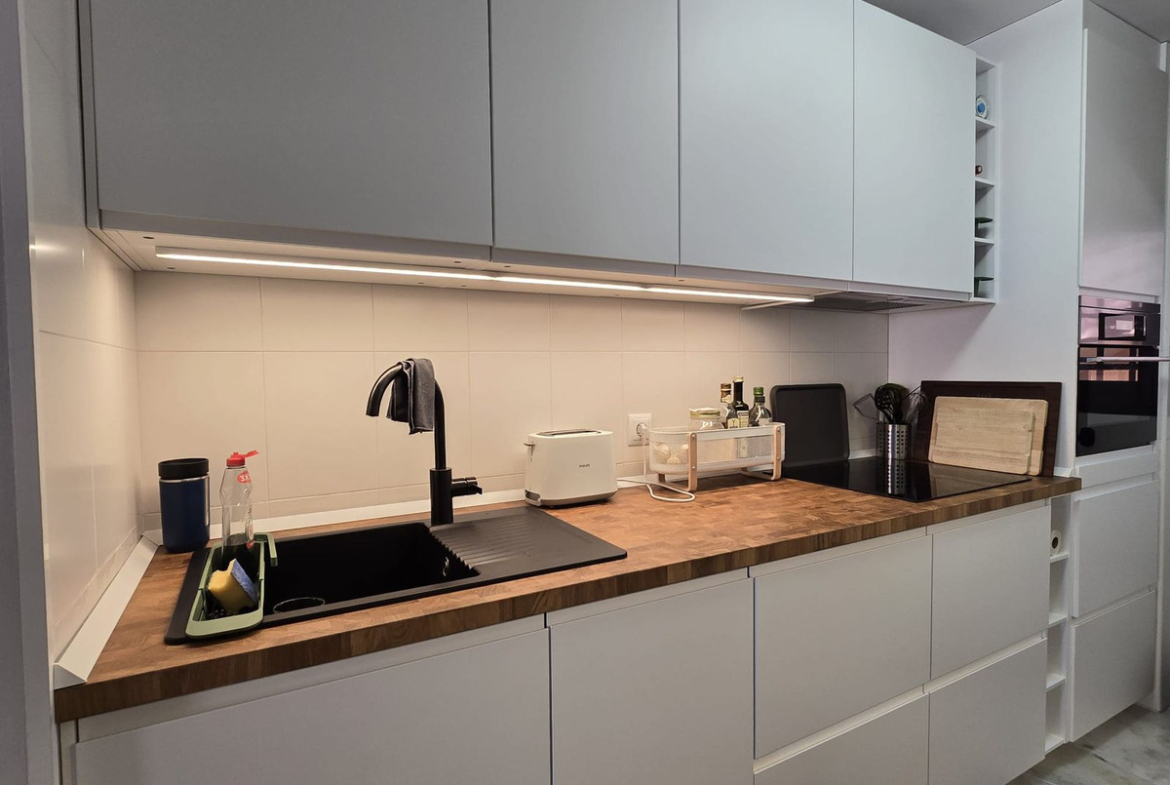 The property has recently undergone several updates, giving its already modern and well-maintained appearance an extra boost. Large windows and sheers provide abundant natural light and a feeling of spaciousness. From the living room and balcony, you can enjoy breathtaking views of the green spaces and the Mediterranean Sea.