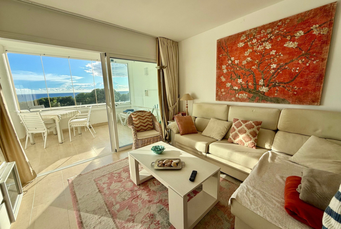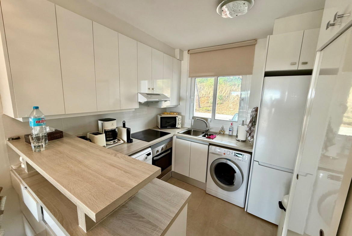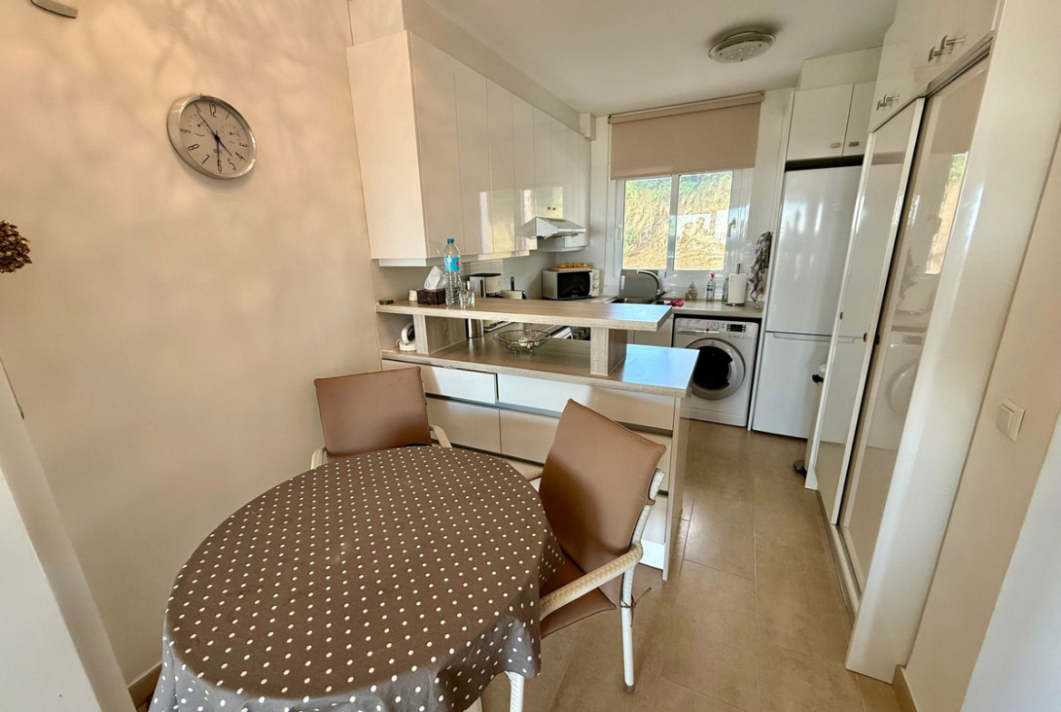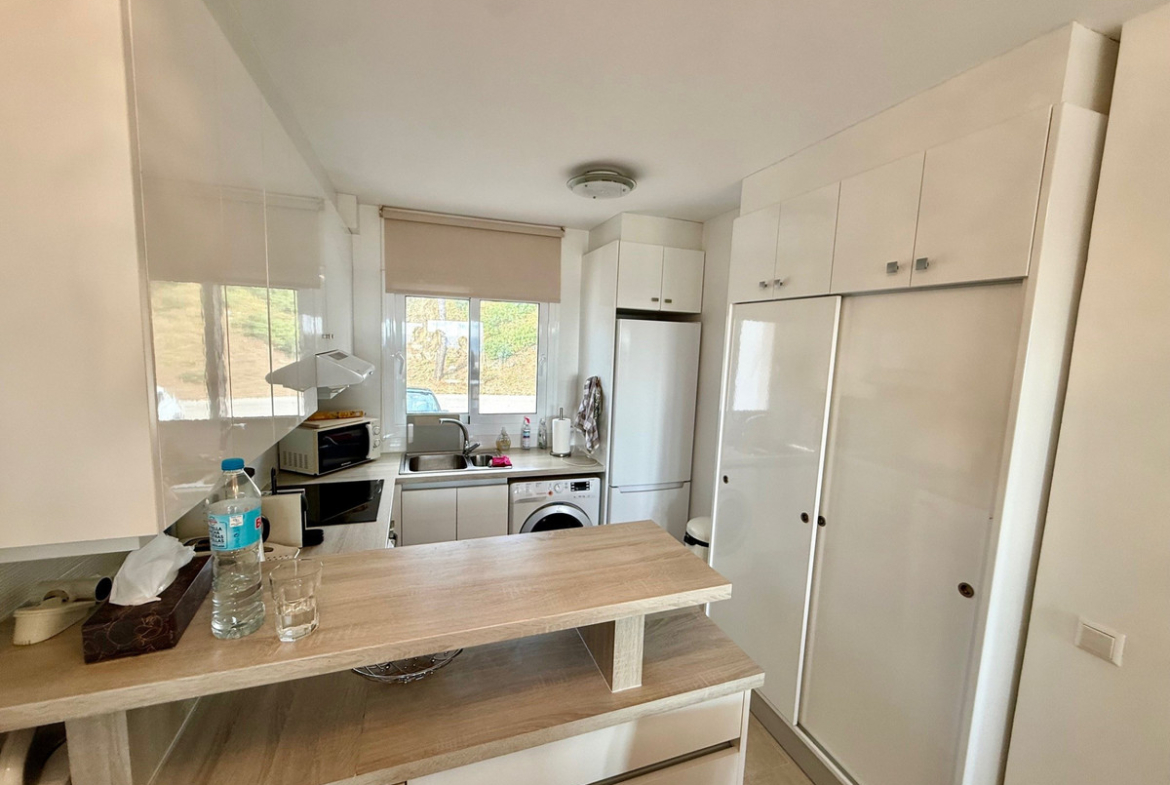 This apartment in Miraflores, Mijas Costa, convinces with its privileged location with magnificent views of the sea, the landscape and the well maintained communal garden and pool. On 80 m2, the apartment offers two cozy bedrooms, a modern bathroom and an open-plan living/dining area, terrace with glazing, which allow a lot of daylight and sea view. The complex includes a beautiful garden, a spacious pool area and parking right in front of the entrance.
