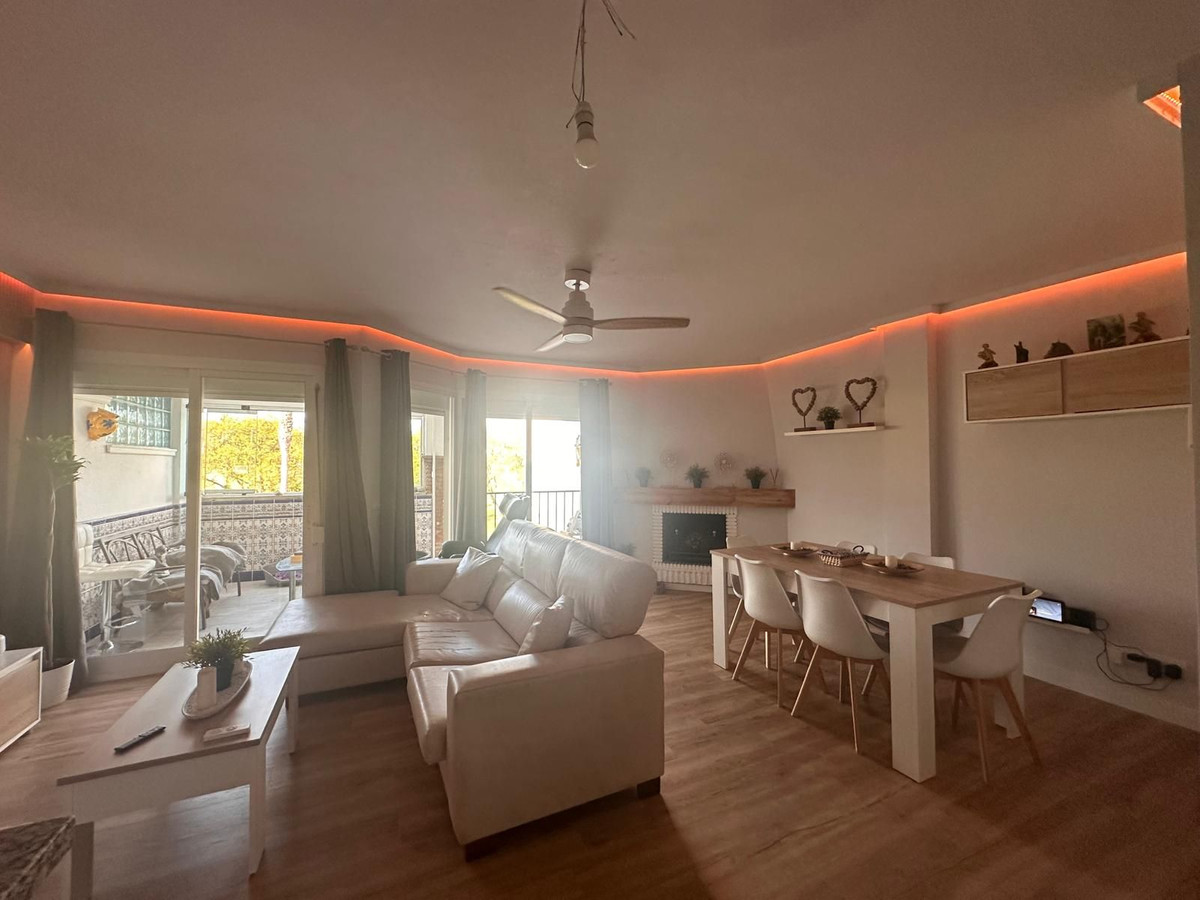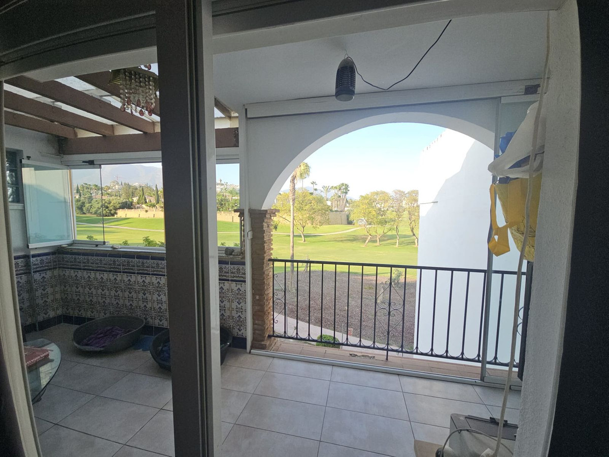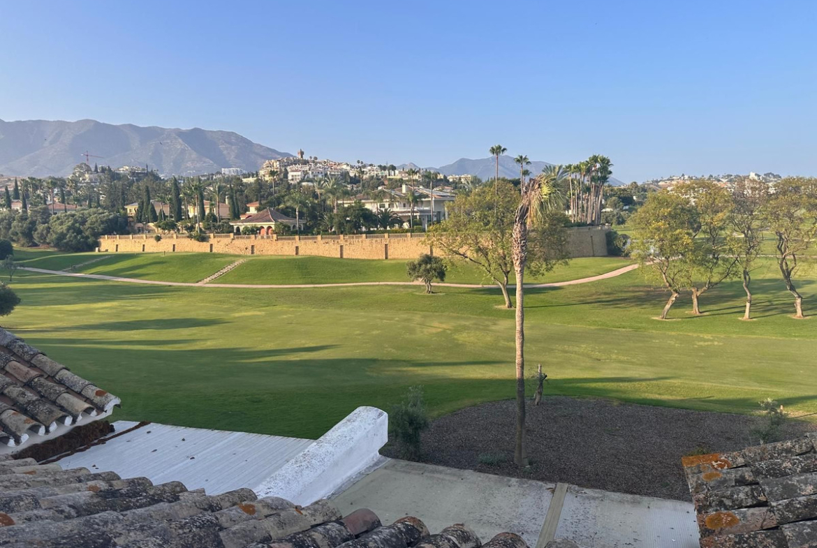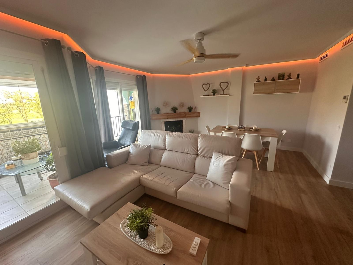 Discover this spectacular frontline golf penthouse. With a completely renovated and tastefully decorated design, this home features two spacious bedrooms and two full bathrooms, perfect for enjoying comfort and style. The kitchen is open to the living room, offering cozy and bright spaces. It also has a fireplace. The living room opens onto a charming terrace where you can relax while enjoying the stunning views of the golf course.