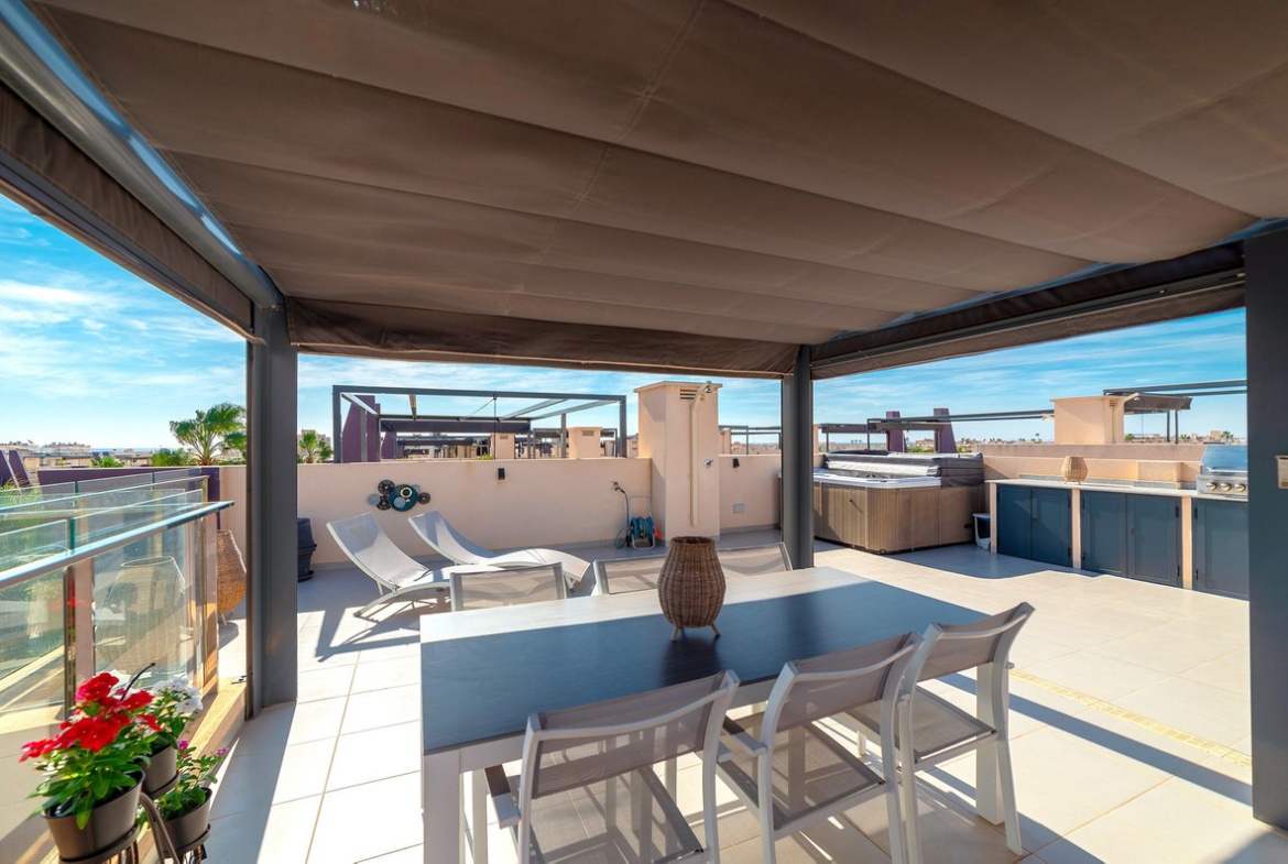In addition to this, there is the real highlight of the home: the large private roof terrace. There is plenty of space for a dining group, sun loungers, your own outdoor kitchen and your own jacuzzi for an extra edge to life. A perfect place for relaxation, social events or just enjoying the view.