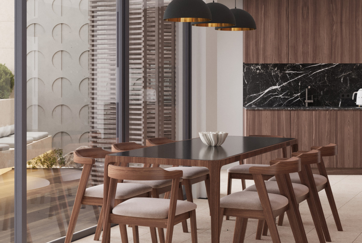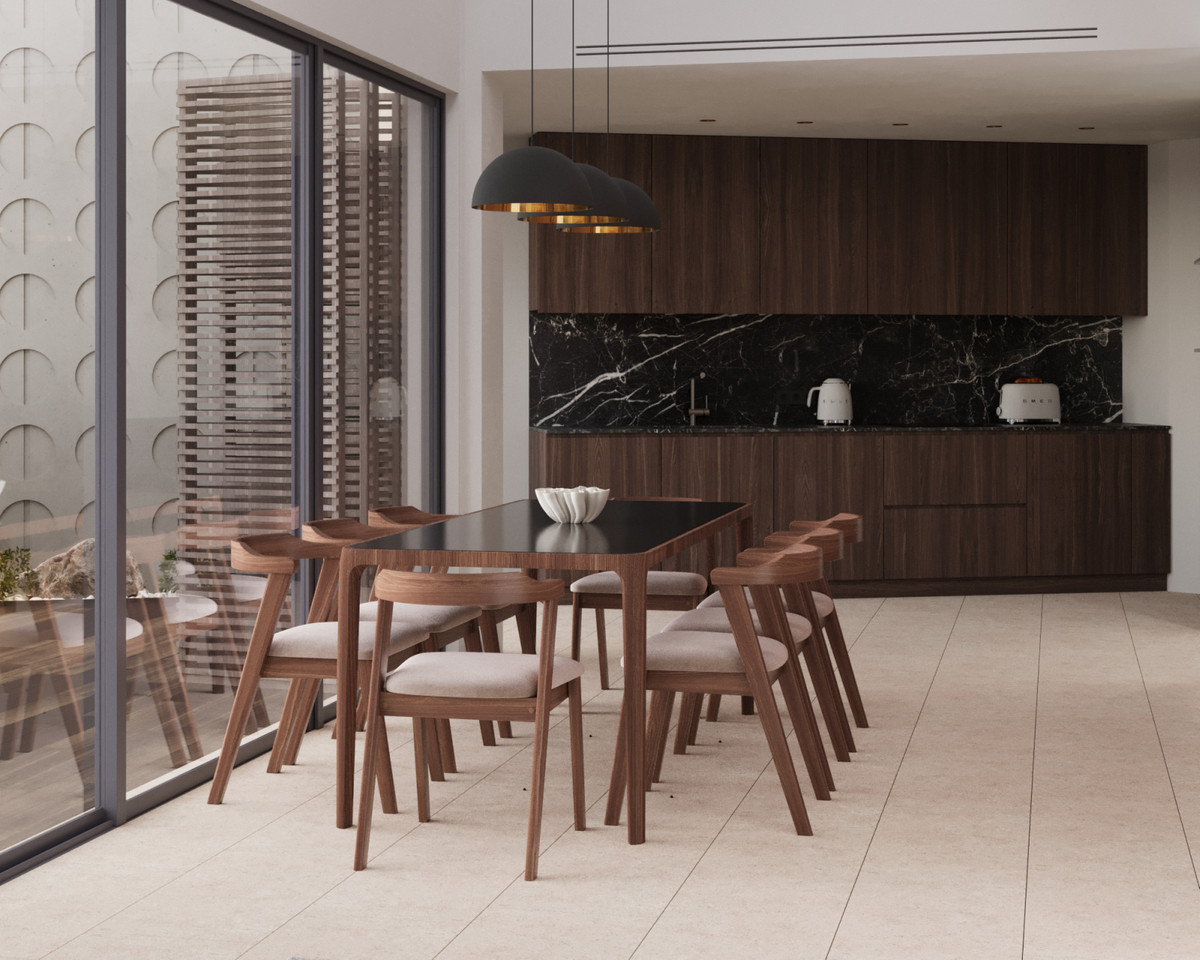 All apartments are equipped with underfloor heating, Schneider light switches, intelligent locks and air conditioning, as well as water-saving bathroom and kitchen fittings. Fully fitted and equipped kitchens. German Villeroy & Boch bathroom taps. Sliding doors unite the terraces and living areas as one, harmonising indoor-outdoor living. Some units are designed with movable walls to adapt to evolving families. Wooden Mallorcan blinds provide shade and allow air to circulate.