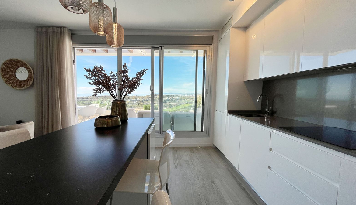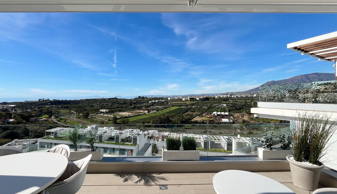 Step out onto the terrace, and you're immediately greeted with impressive views of Gibraltar and Africa, a beautiful backdrop for any day. The first terrace is equipped with a dining table and a lounge area, ideal for meals outdoors or simply enjoying the fresh air.