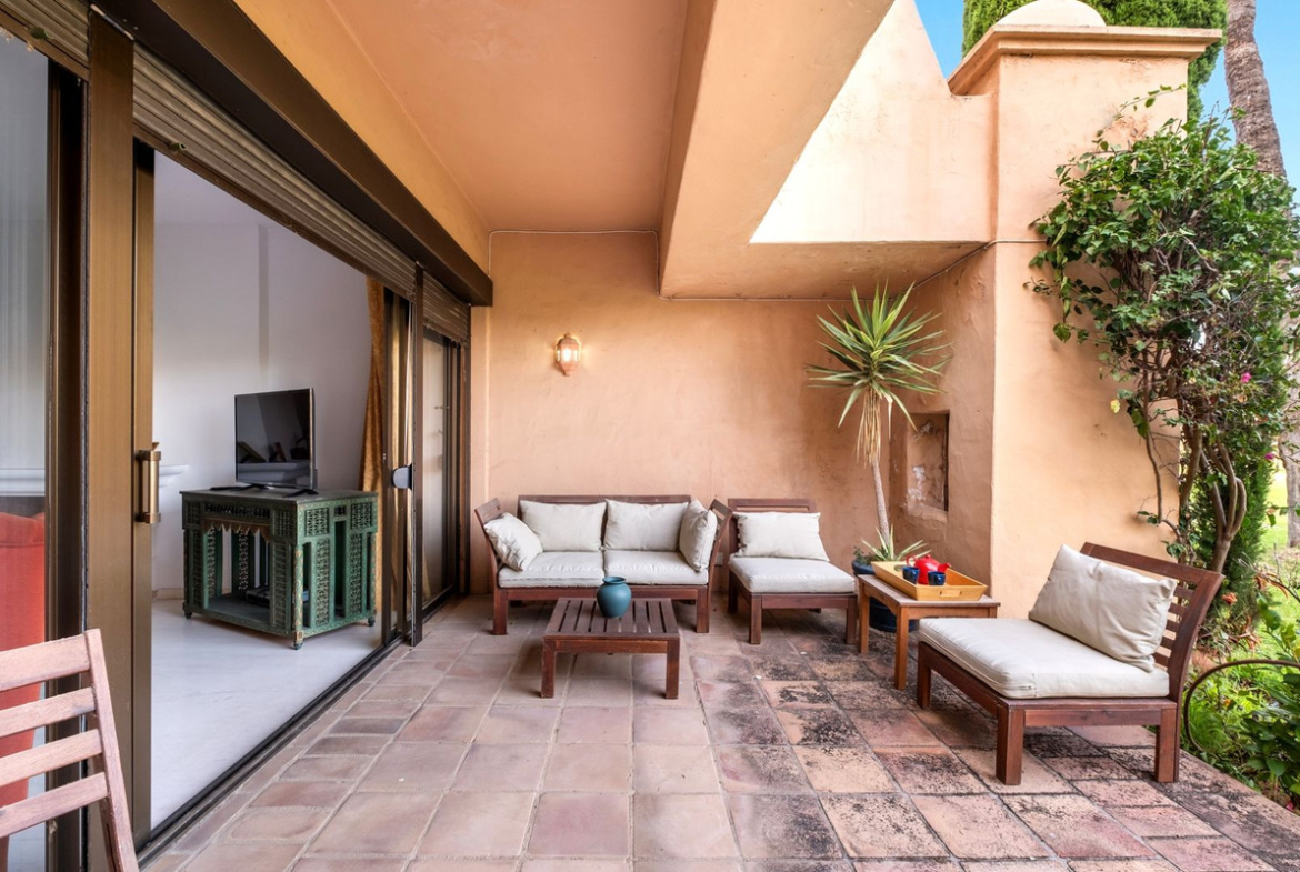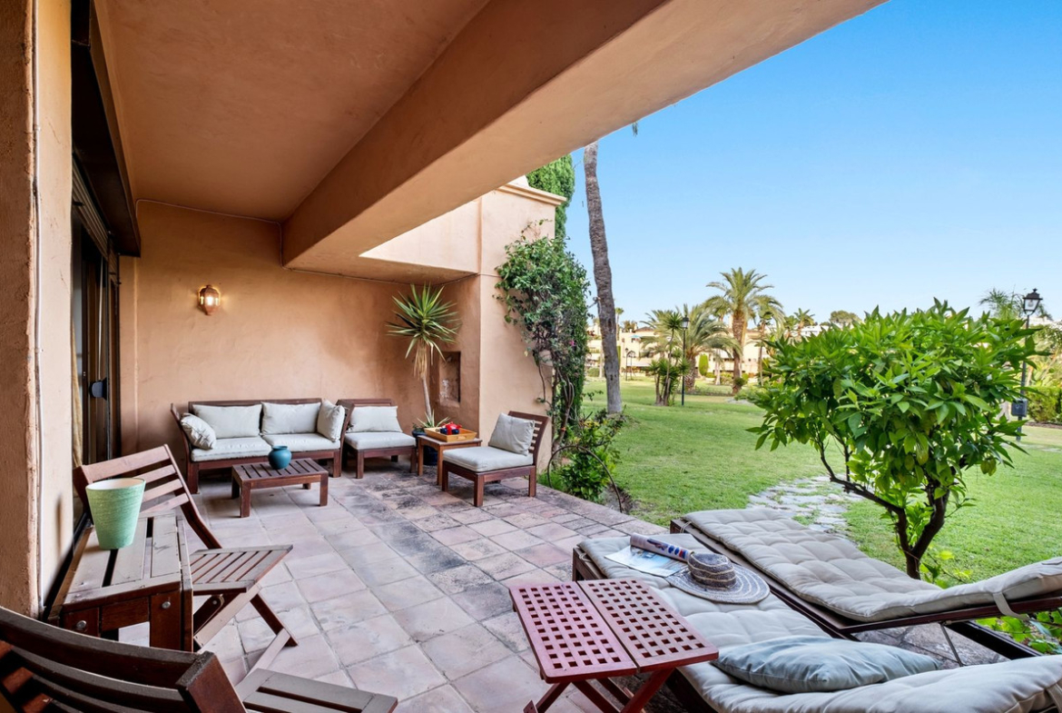 Located in the exclusive residential complex La Cartuja del Golf, this charming ground-floor apartment combines comfort, style, and a unique connection with nature. With an excellent layout and a warm atmosphere, the property features a bright living-dining room with a fireplace, tastefully furnished, and with direct access to a spacious private terrace — ideal for relaxing, enjoying the sun, or sharing special moments outdoors.