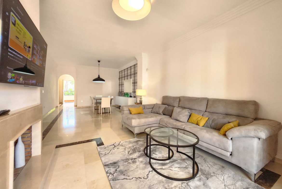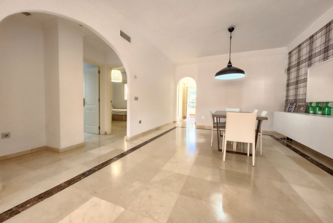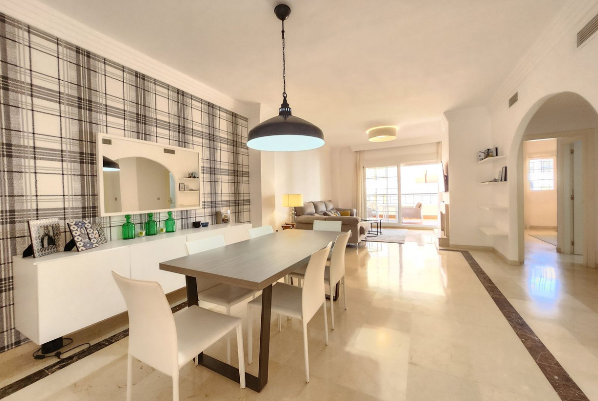 This elegant apartment in residential complex, located in Nueva Andalucía, Marbella, has been fully renovated, offering a modern and sophisticated living space. With 150 m² of built area, the property features two spacious bedrooms and two full bathrooms, designed with contemporary style and high-quality finishes.