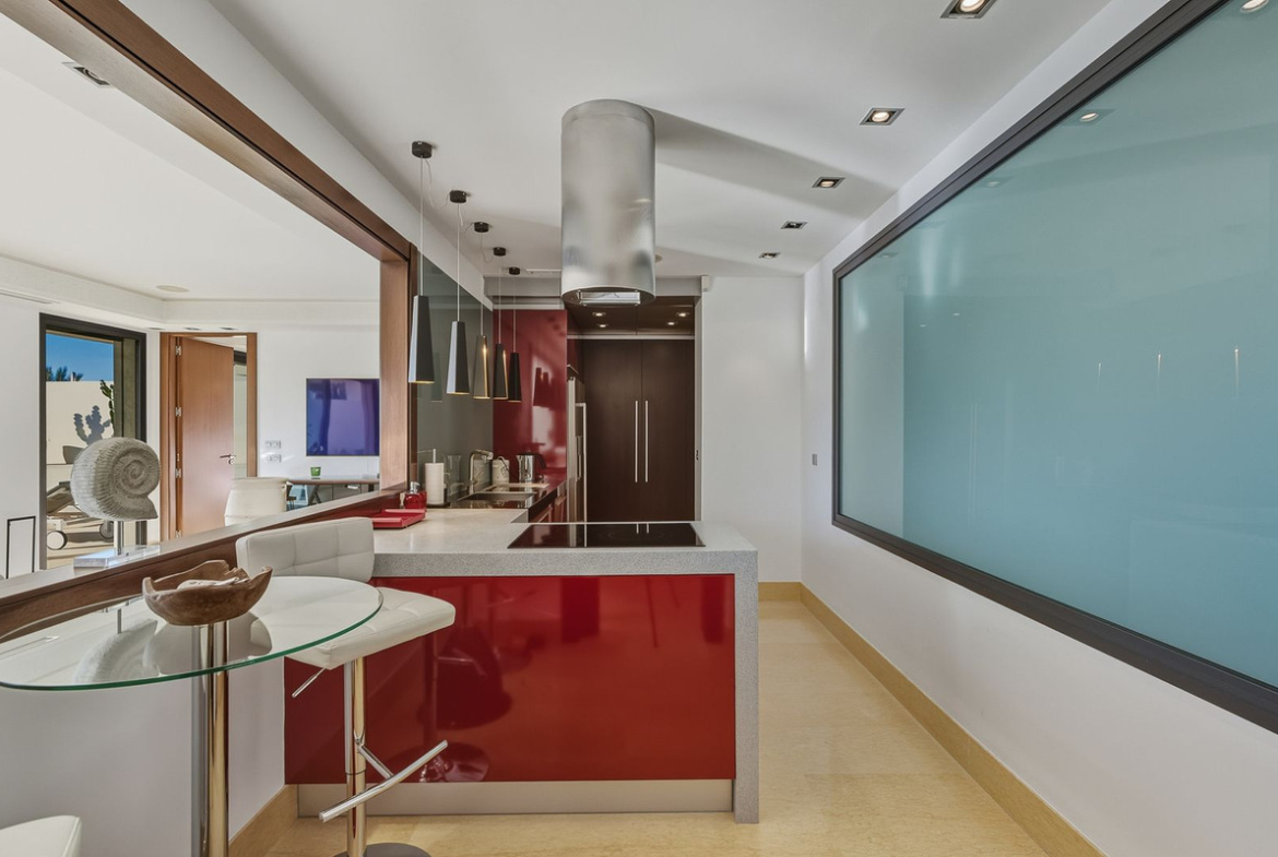 Inside, you’ll find a spacious and light-filled living area with an open-plan kitchen, creating a modern and sociable layout. Large floor-to-ceiling windows flood the apartment with natural light and provide direct access to the terrace from the living room and master suite.