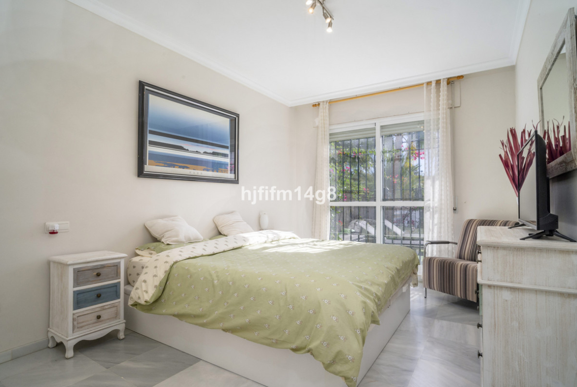 This is a 2-bedroom ground floor garden apartment. The apartment is in good condition with original kitchen which can easily be opened up if wished, dining and lounge area with direct access to the terrace. The terrace is an excellent spot as it offers full privacy and leads to the fully private garden overlooking La Concha mountain and the communal pool area. The master bedroom is spacious with en-suite bathroom and direct access to terrace. The guest bedroom is also of a good size and has a separate bathroom.