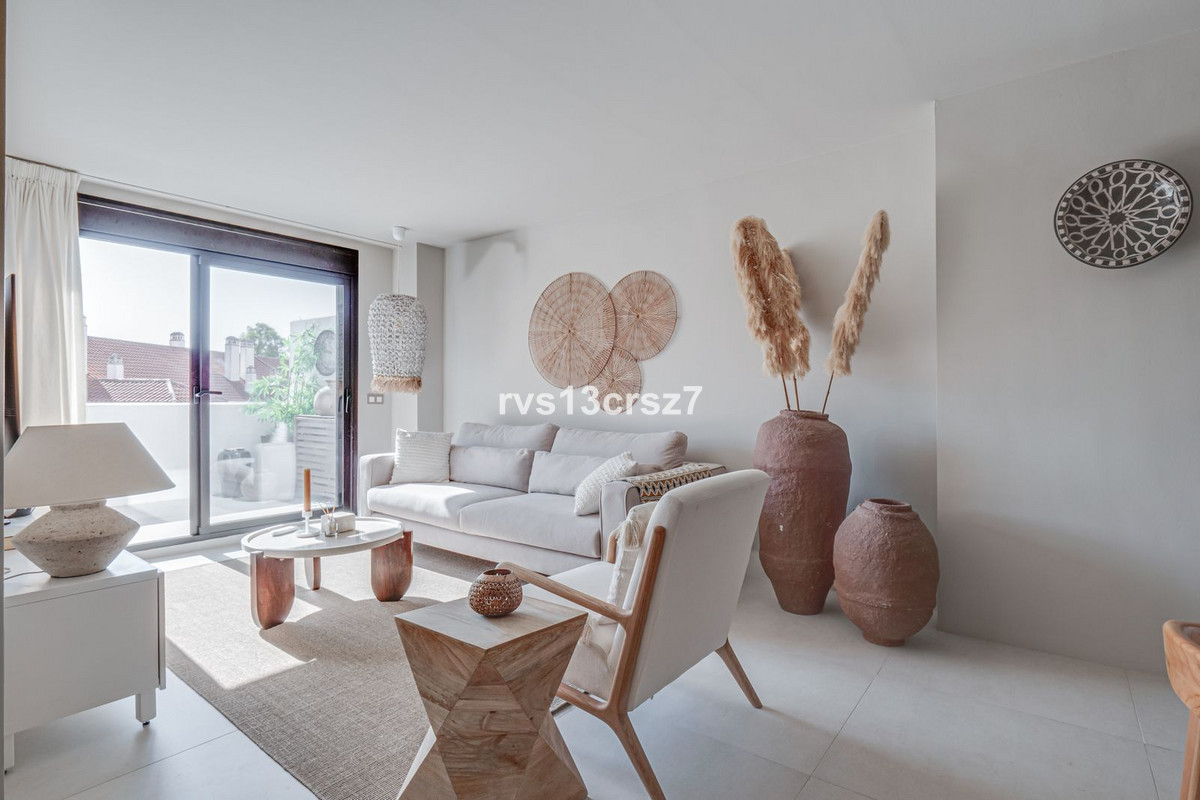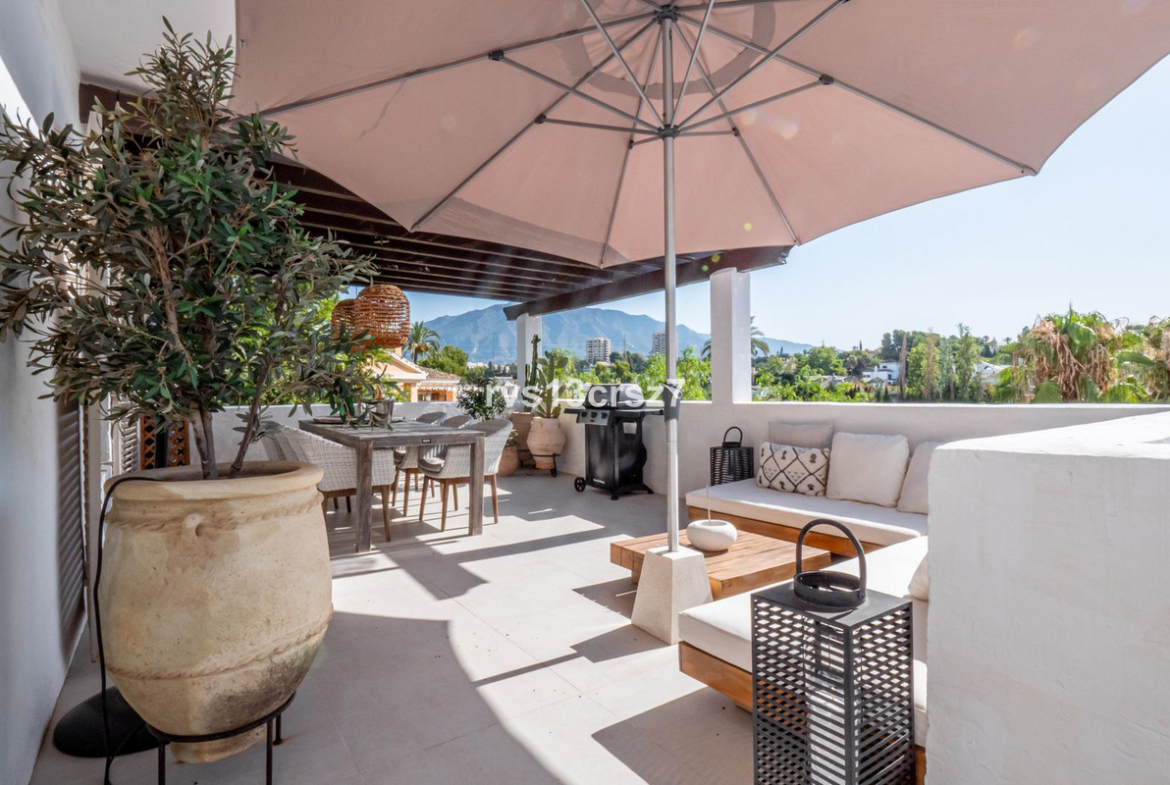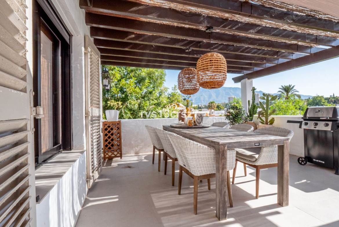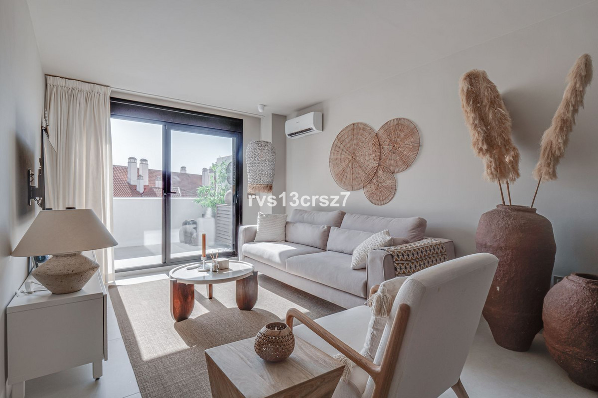 Beautiful, stylishly renovated 2-bedroom apartment in the charming, popular, typically Spanish urbanization of La Maestranza, in the heart of Nueva Andalucia.