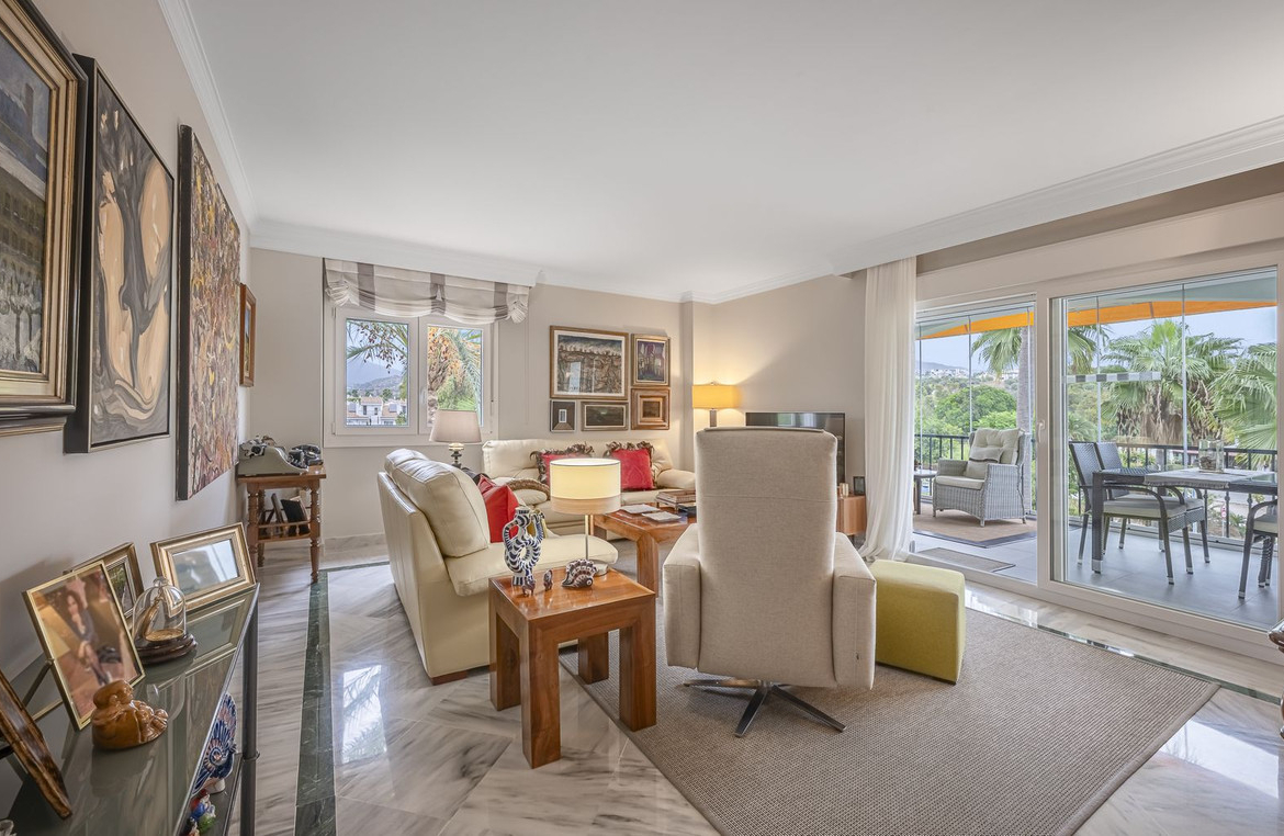 Apartment for sale in Dama de Noche, Puerto Banús! Bright corner apartment on the second floor with east orientation, enjoying sunlight throughout the day.