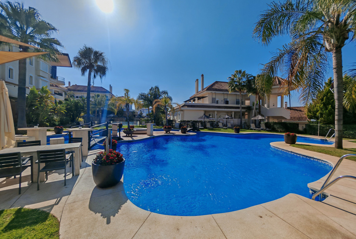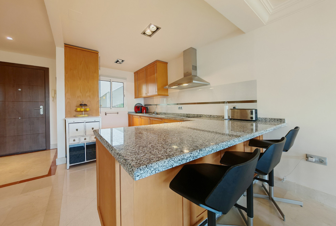 Apartment for sale in , Marbella with 2 bedrooms, 2 bathrooms, 1 on suite bathroom and with orientation south/west, with communal swimming pool, private garage and communal garden. Regarding property dimensions, it has 99 m² built and 52.4 m² terrace. Has the following facilities amenities near, transport near, air conditioning, fully fitted kitchen, storage room, barbecue, security service 24h, private terrace, sea view, mountain view, covered terrace, 24h service, electric blinds, fitted wardrobes, gated community, pool view, close to sea / beach, open plan kitchen, good condition, close to shops, close to town, close to schools and close to restaurants.