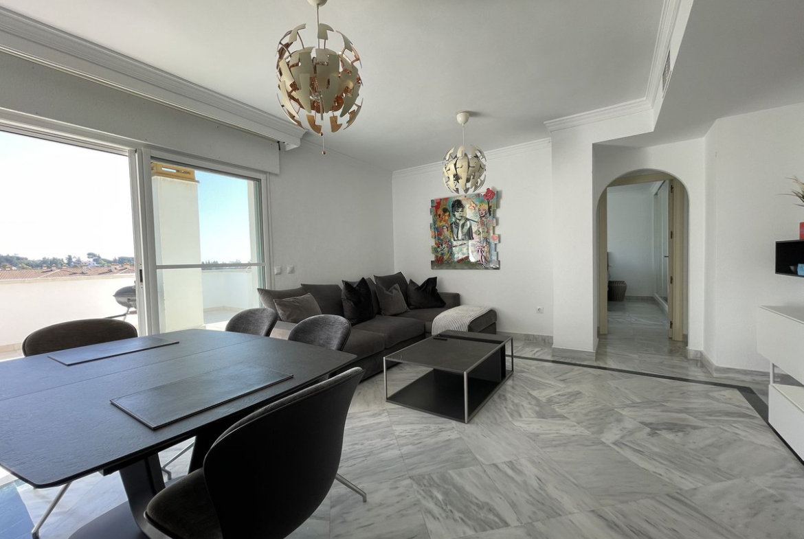 Discover the perfect blend of luxury and convenience with this spectacular 2-bedroom, 2-bathroom penthouse in the prestigious La Dama de Noche Urbanization. Enjoy breathtaking mountain views and abundant natural light / very illuminated apartment, thanks to its enviable South East, South, and South West orientations. Each room has electrical blinds, the kitchen, and terrace floor have all been recently renovated, and the air conditioning is newly installed.