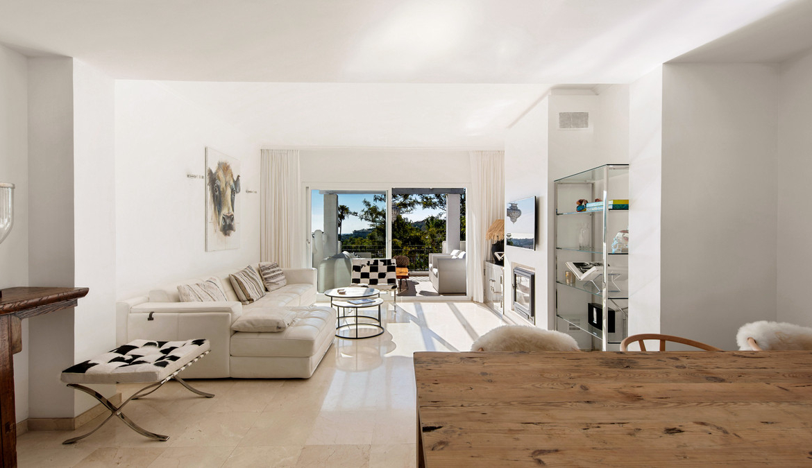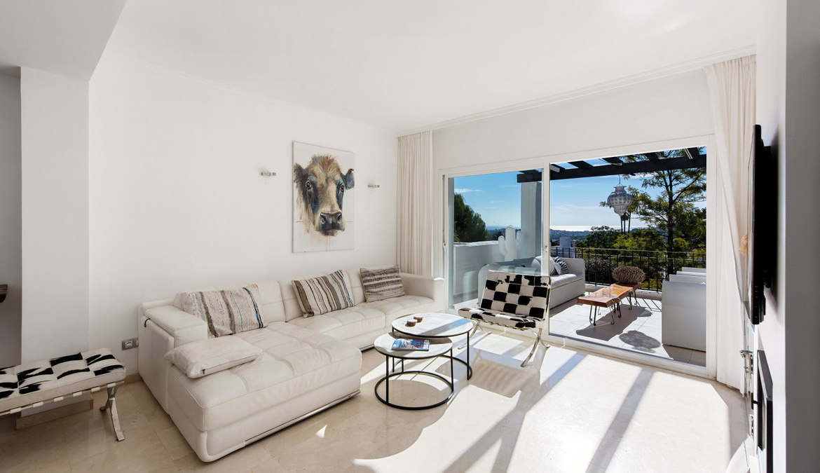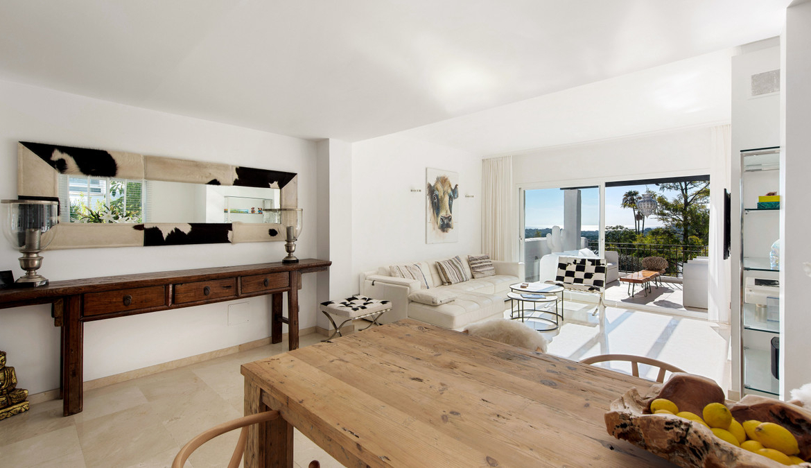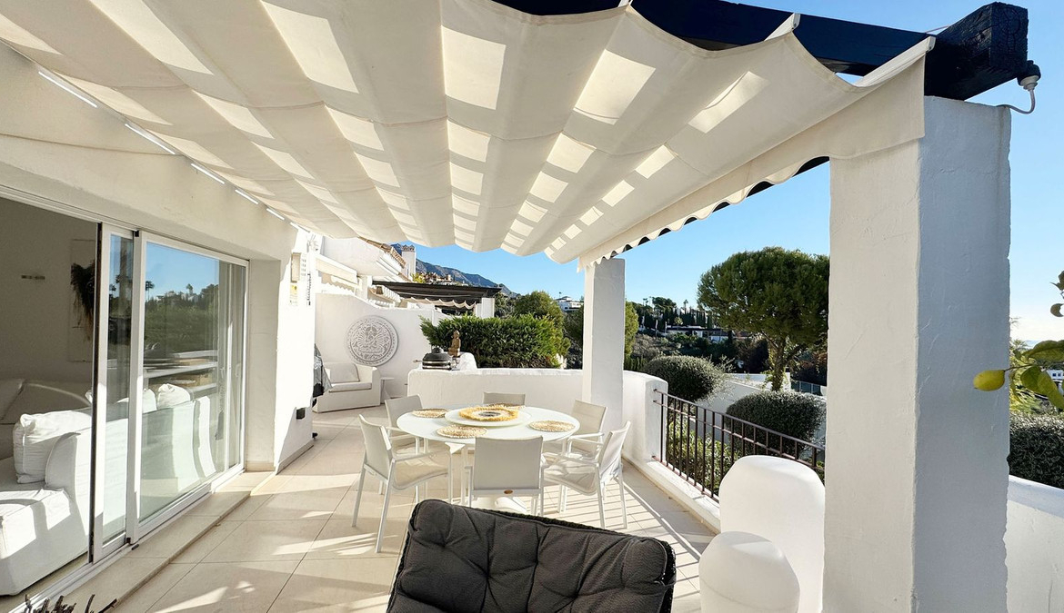 Situated in a quiet residential area of Nueva Andalucia's Golf Valley, this luxurious and sought-after gated development offers immaculate grounds, a large communal pool and a superb Southerly orientation as well as stunning panoramic sea views.