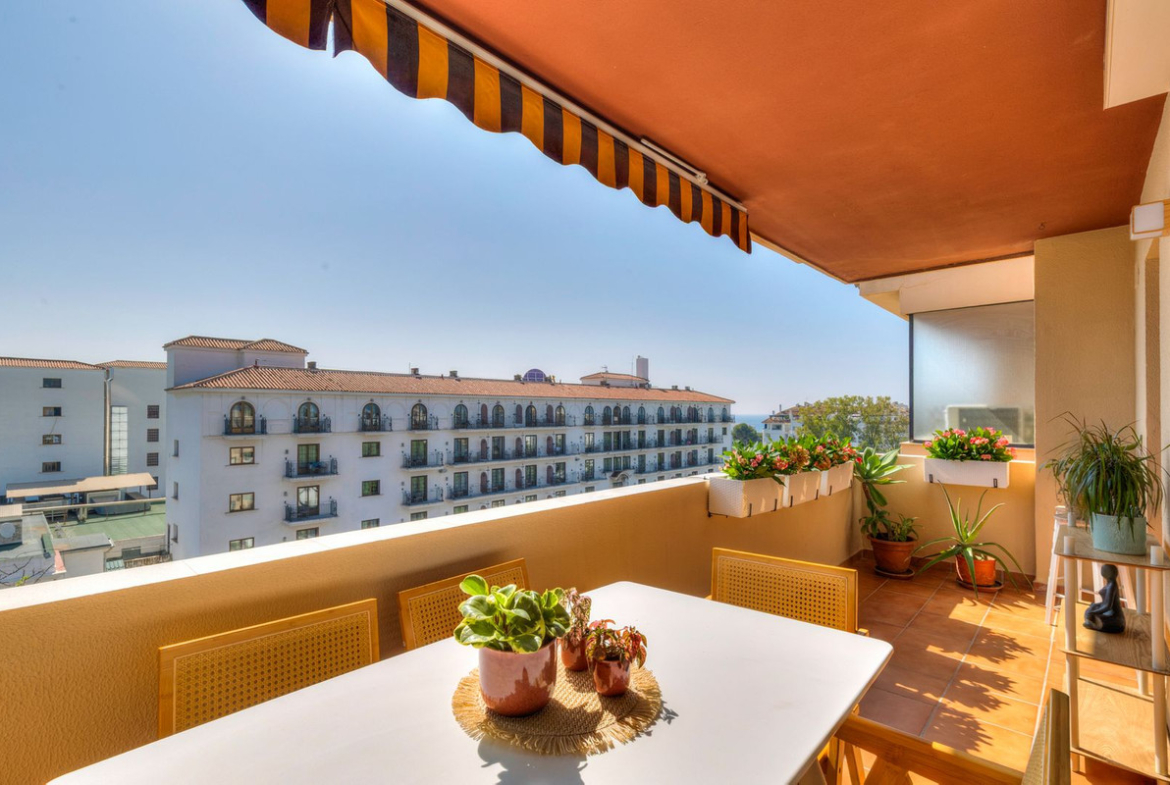 The property offers 100 m² distributed across two bedrooms and two bathrooms (one en-suite), two independent terraces, a large living-dining room, and a fully equipped kitchen. It has been recently renovated and features ducted air conditioning throughout, as well as new PVC insulated windows and enclosures. Its brightness stands out, being situated on the top floor, with beautiful open views of the mountains and the sea.