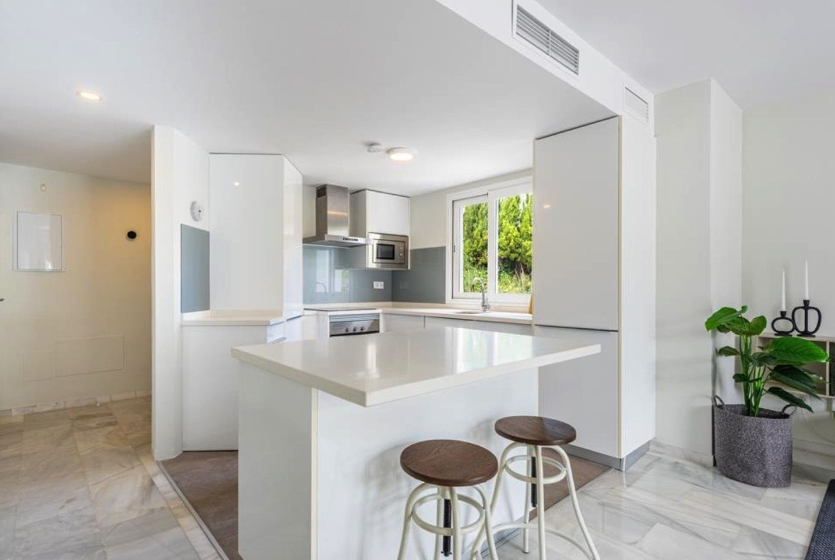 Discover this rare gem in the heart of vibrant Nueva Andalucía, within the exclusive Ivy Residence – a beautifully renovated boutique complex of just 26 modern apartments, ideally situated in Marbella's coveted 'Golf Valley' on the Costa del Sol. This spacious, light-filled two-bedroom home offers a thoughtful layout across two levels, perfect for couples, small families, or as a lucrative holiday retreat. Nestled in a prime spot just a 10-minute stroll from the glamorous Puerto Banús marina – with its designer boutiques, yacht harbour, fine dining, and buzzing nightlife – and moments from pristine beaches, world-class golf courses like Aloha and Los Naranjos, international schools, supermarkets, gyms, and trendy restaurants. Enjoy the best of Mediterranean living with effortless access to everything, yet in a peaceful, residential setting away from the hustle.