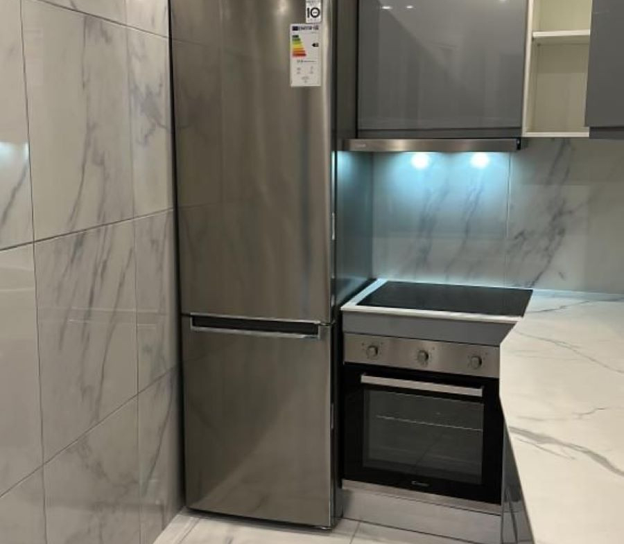 Upon entering, you'll discover a living space that seamlessly blends sophistication and comfort. The living area features sleek, minimalist décor and a neutral color palette, enhancing the sense of light and spaciousness. The fully equipped kitchen includes all necessary appliances, while the two tranquil bedrooms provide a peaceful retreat, with the master bedroom benefiting from an en-suite bathroom.