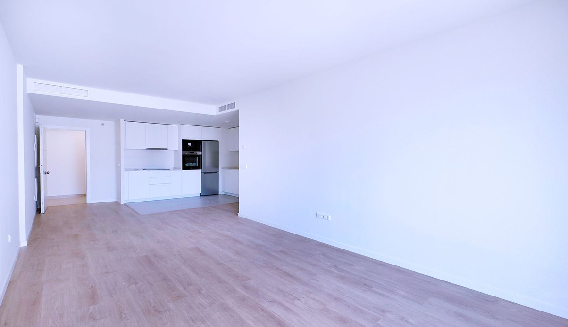 Spacious living-dining room with open-plan kitchen, creating a modern and functional atmosphere.
