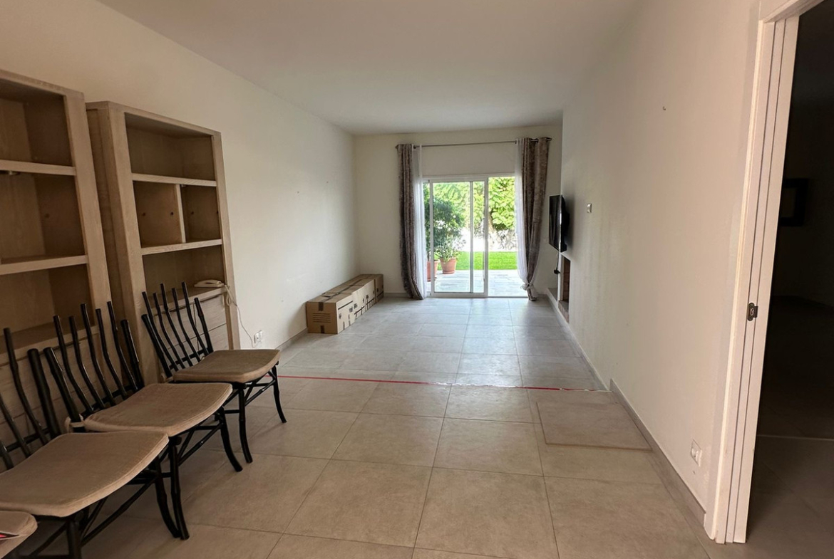 Inside, the apartment features a welcoming living room with a fireplace, perfect for relaxing evenings. The private terrace and ground floor patio offer pleasant outdoor spaces with delightful mountain, golf, and garden views. High-speed internet (Wi-Fi) is available throughout, and pets are permitted, catering to a variety of lifestyle needs. The property is offered unfurnished, allowing new owners the opportunity to personalise the interiors to their taste.