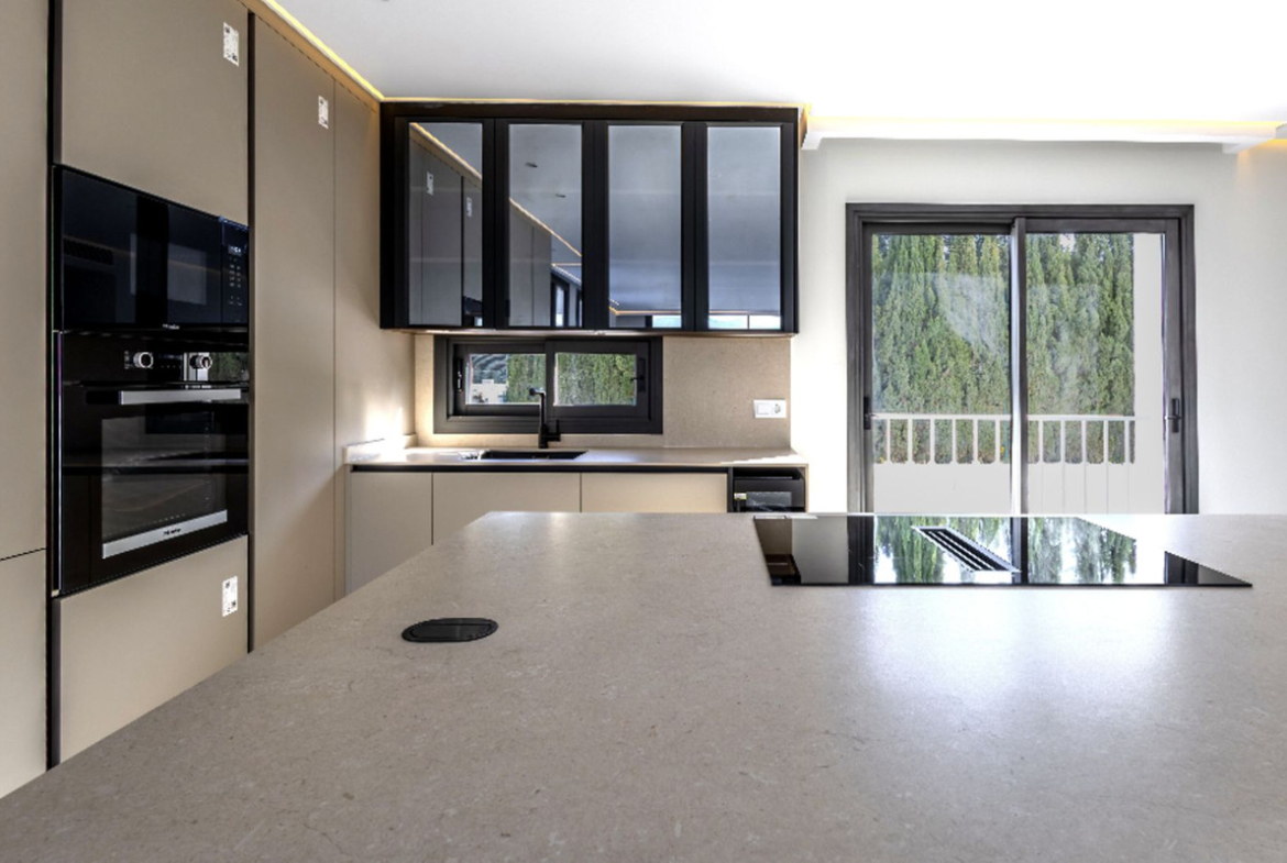 Large rooftop terrace with outdoor kitchen and bioclimatic pergola, perfect for entertaining and enjoying the Mediterranean lifestyle