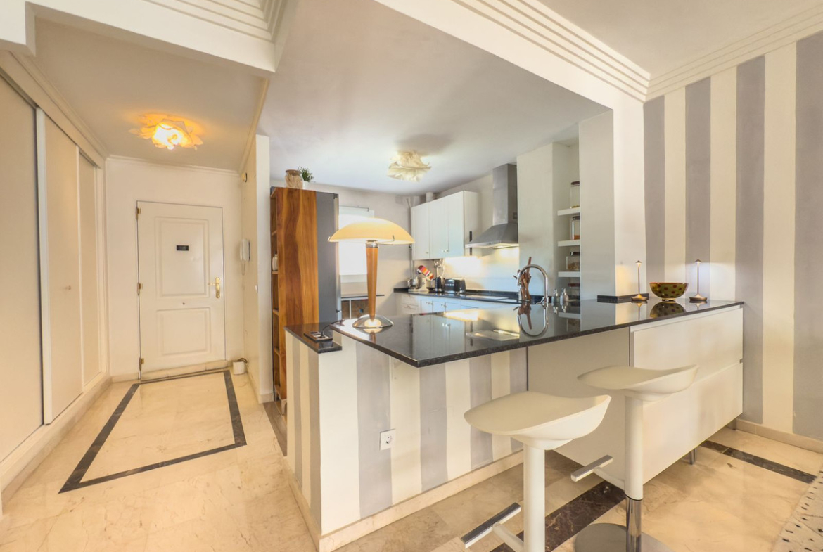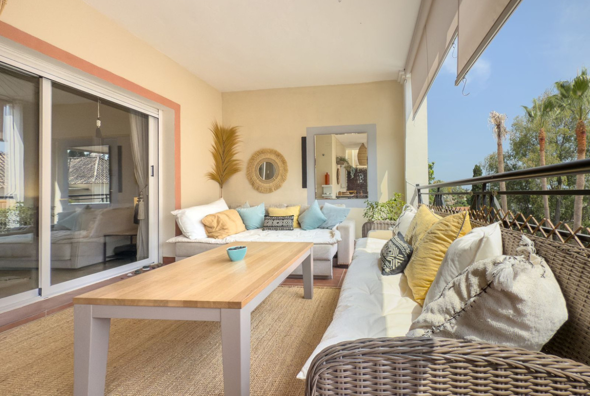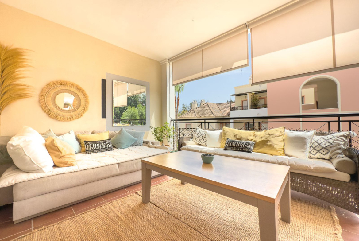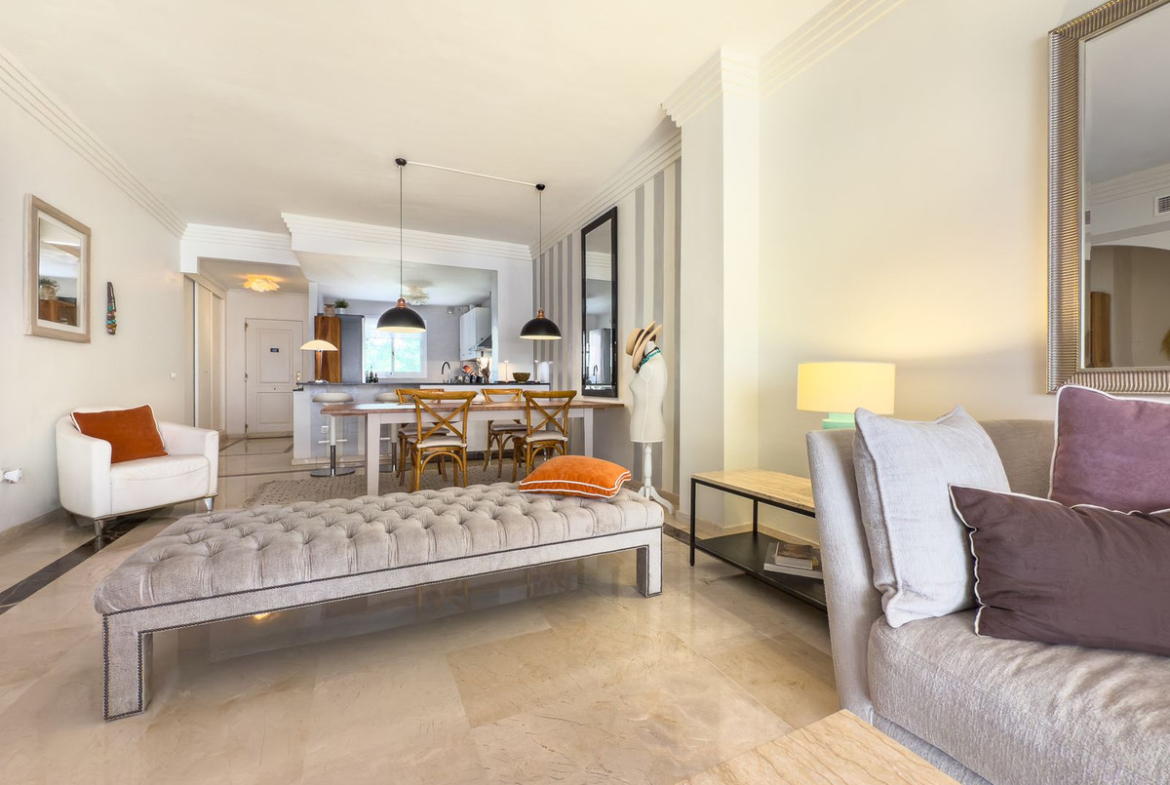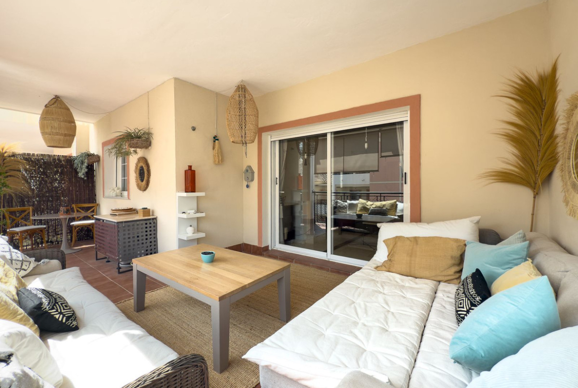 Ideally situated in the heart of Nueva Andalucía, this spacious apartment for sale offers the perfect blend of comfort, convenience, and lifestyle. Featuring 2 bedrooms and 2 bathrooms, along with a generously sized open kitchen, the layout is both practical and inviting. The living room includes a fireplace, large windows, and direct access to a covered terrace overlooking the communal area. The apartment includes underground parking and storage. Additional parking space could be purchased for 20,000EUR.